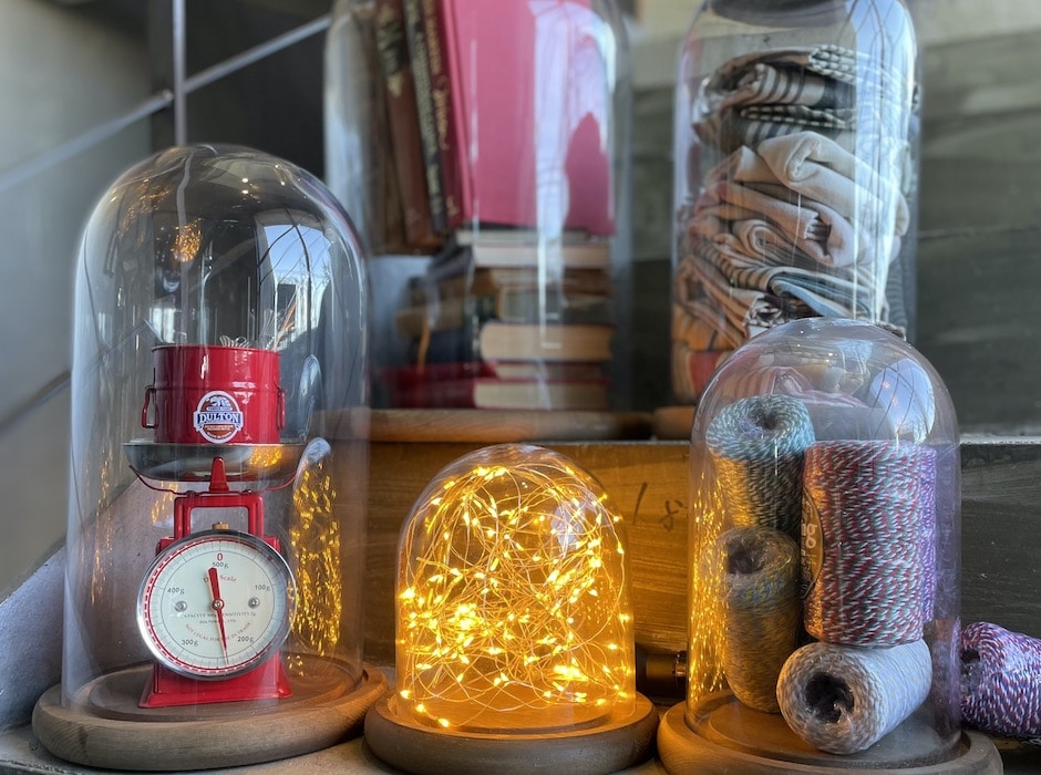 身の回りのキッチン雑貨も立派なディスプレイに魅せてくれるガラスドーム。
