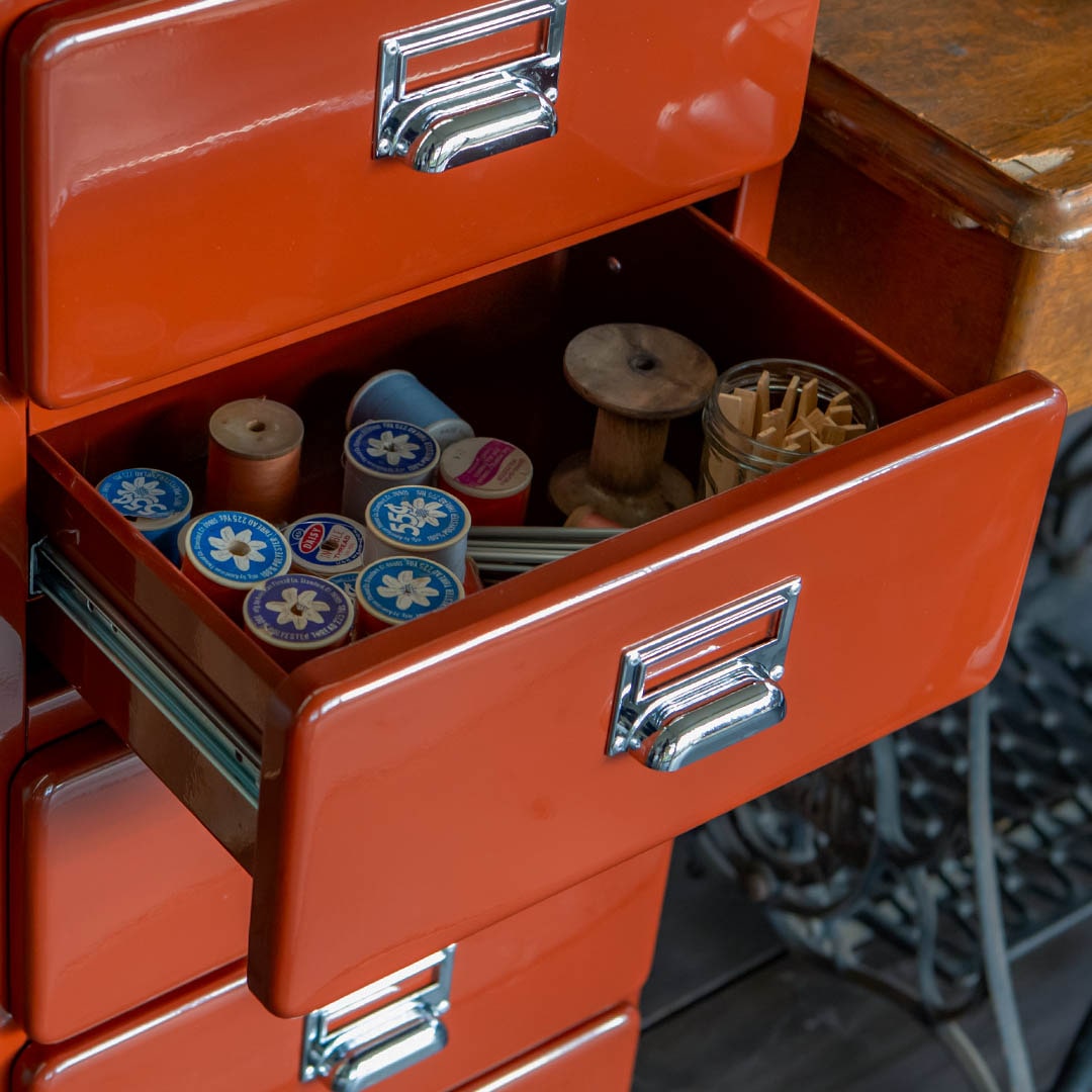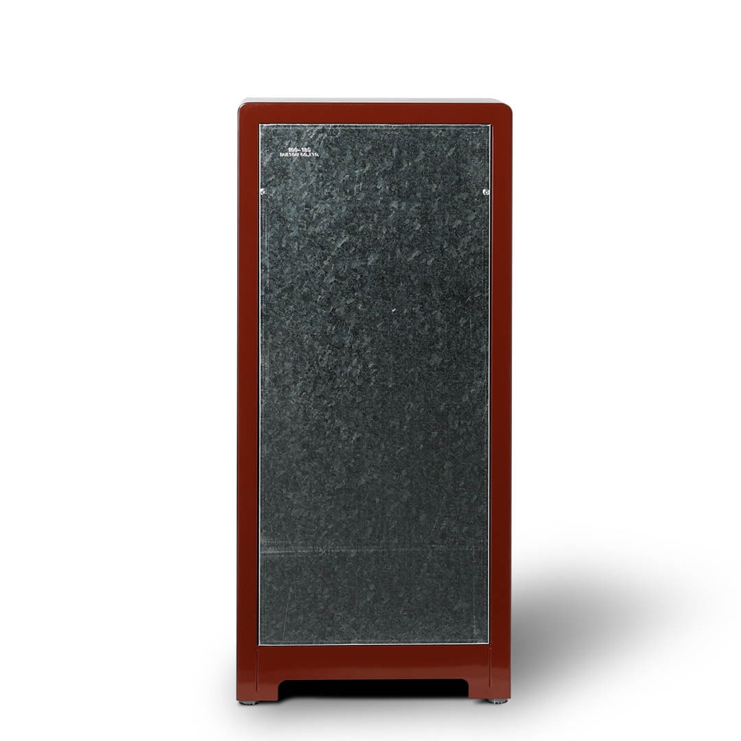 その人柄が表れている様な、丸みを帯びたフォルムの収納家具。スリムで扱いやすいサイズ感ながら、スチールの重厚感が空間の印象を引き締め、暮らしに余白と秩序をもたらします。リビングやベッドサイド、ショップからオフィスまで、幅広いスペースで活躍する一台です。