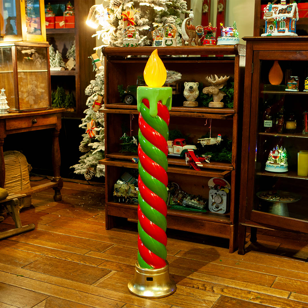 大胆な色使いと大ぶりなサイズ感に海外ムードを感じる樹脂製オブジェ。 スイッチをONにすると炎が揺らぐように先端のランプが光ります。 店舗ディスプレイの雰囲気づくりとしてはもちろん、 自宅のインテリアに加えることでいつもの空間に新鮮さをプラス。 ホリデーシーズンやバレンタインシーズンのムードをグッと盛り上げてくれ、アレンジ次第で脇役にも主役にもなるアイテムです。