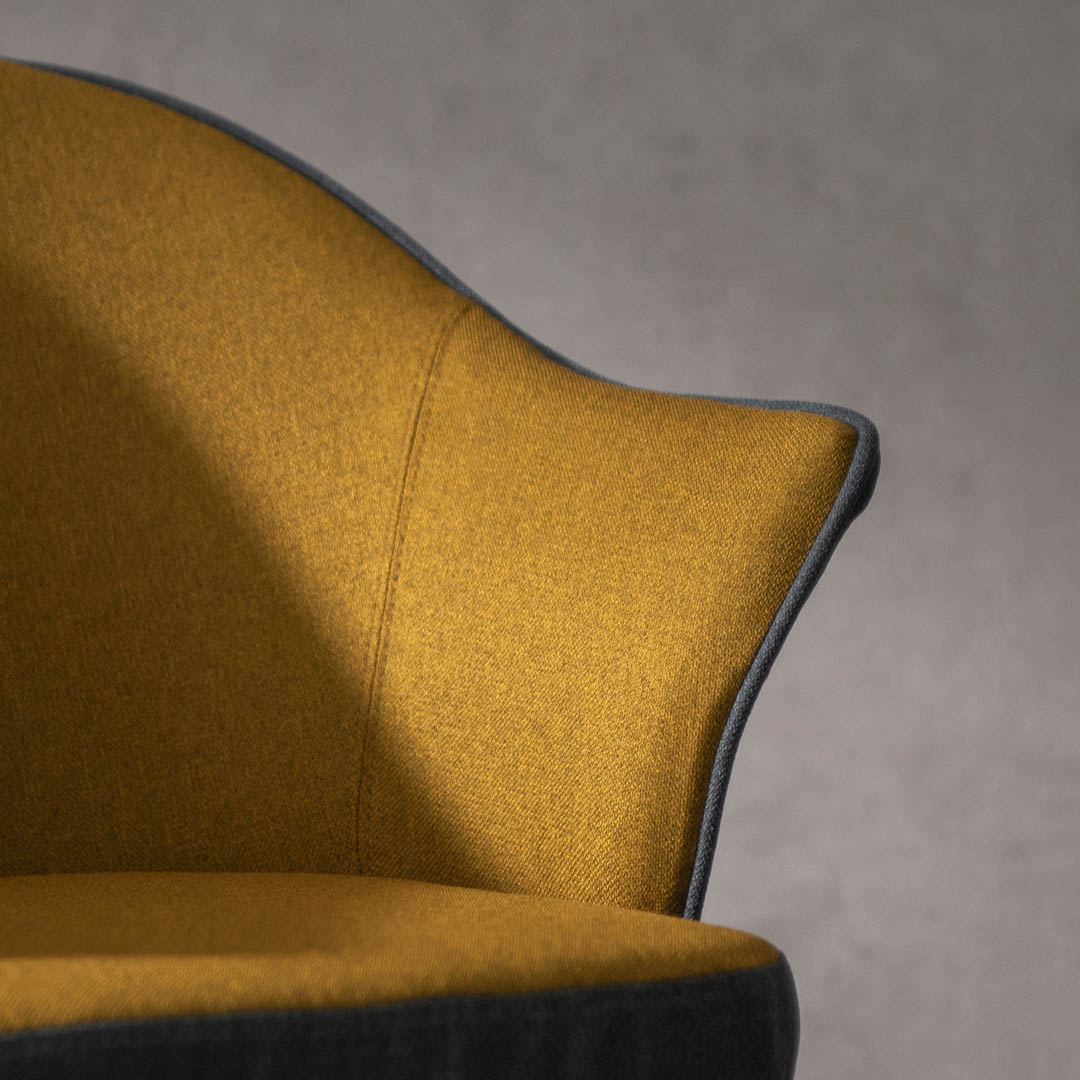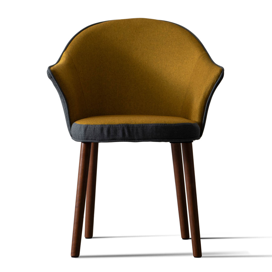 背からアームへと流れるようなカーブラインが身体をふんわりと支えます。程よいクッション性と安定感のある形状で、食事や会話の時間が自然と長くなる。カラーリングも相まって、そこには心地よい時が流れます。