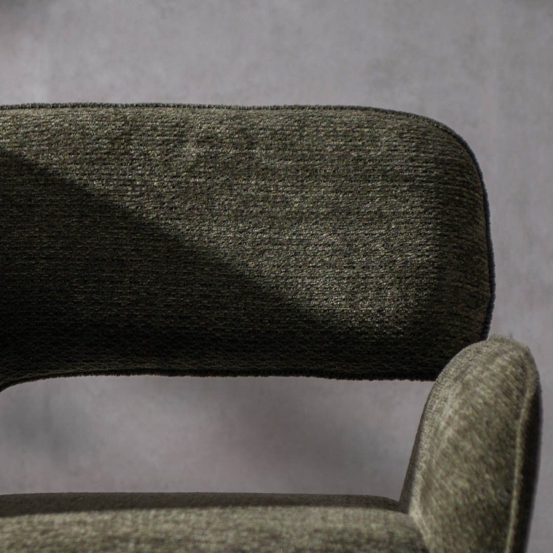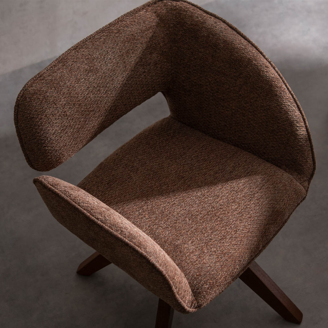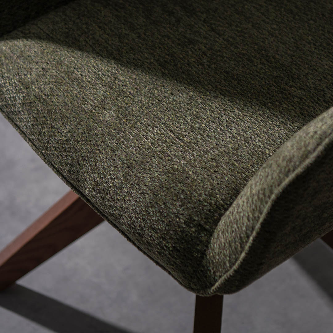 深みのあるファブリックのトーンが自然と空間に馴染みます。オークの脚部はブラウン塗装仕上げで、素材の風合いを活かしながら上品な印象に。落ち着いた色合いで幅広いインテリアスタイルにマッチします。