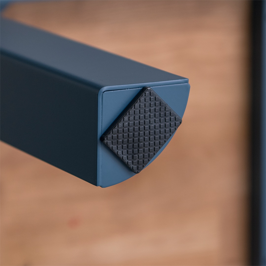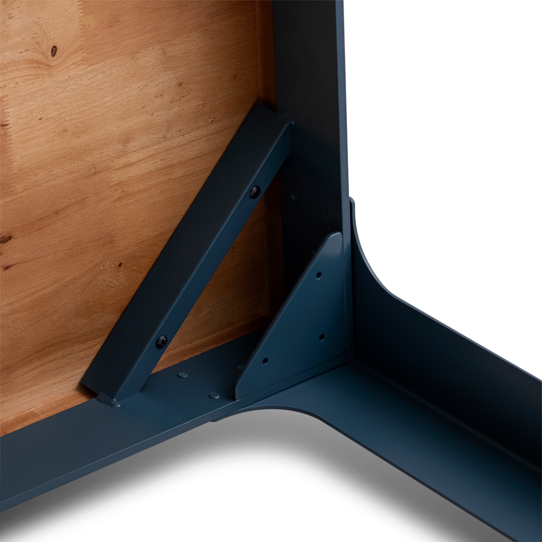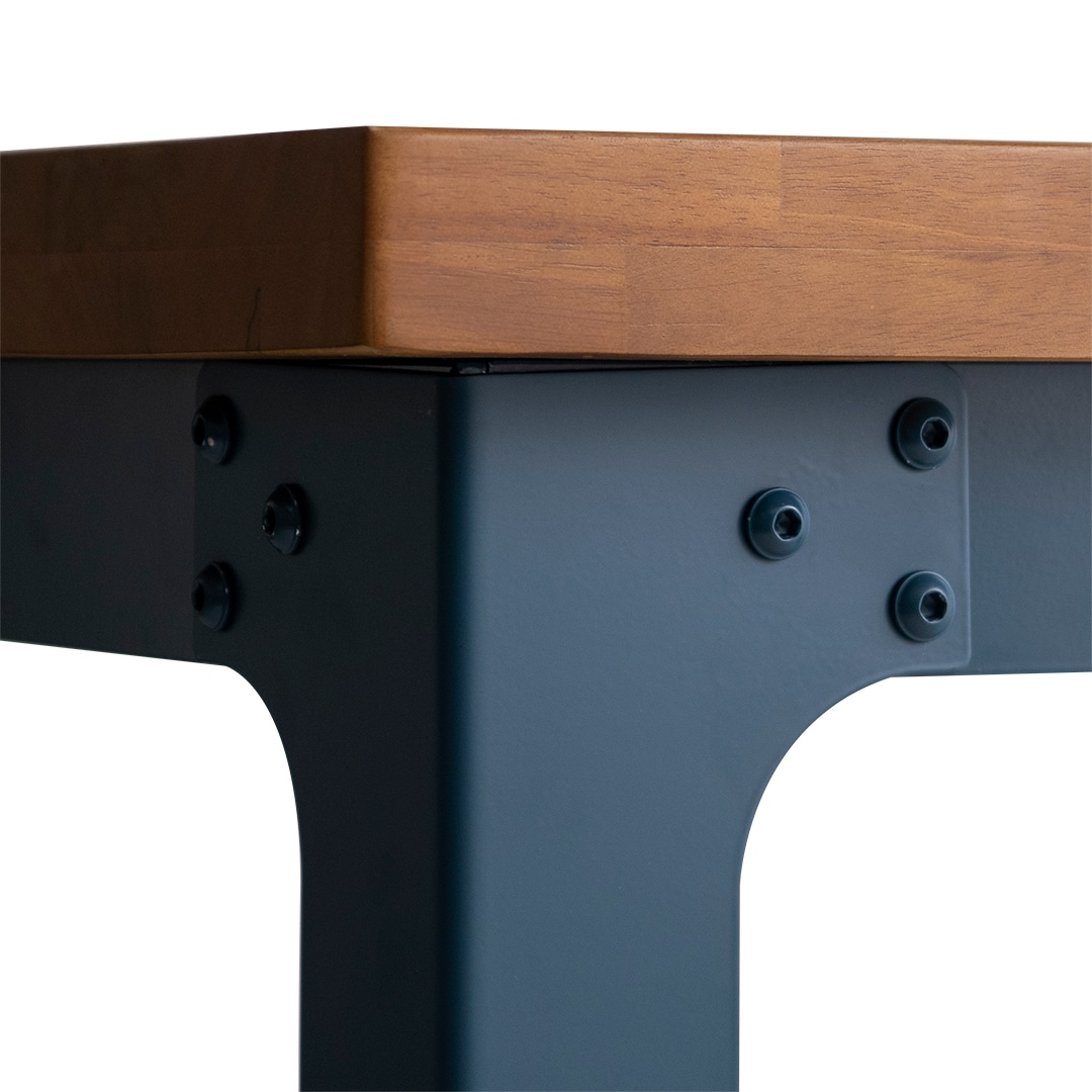 重厚な天板と深みのあるネイビーのスチール脚。異素材のコントラストが生む存在感が空間を引き締めます。家族の食卓にも、ワークデスクにも。4人でゆったりと食事や作業ができる1600×800サイズです。