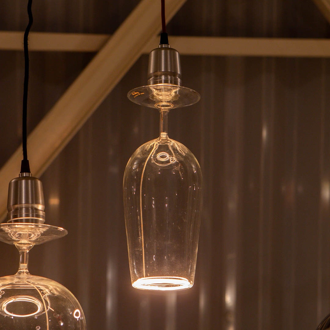 飲み口が光るビアグラス型のLED電球。 明かりを灯すとグラス全体のシルエットが幻想的に浮かび上がります。 バーカウンターやダイニングに並べて吊るしても明るくなりすぎず、個性的ながらも落ち着いた雰囲気を演出。 遊び心と上品さを併せ持ち、空間に居合わせる人の心を掴みます。