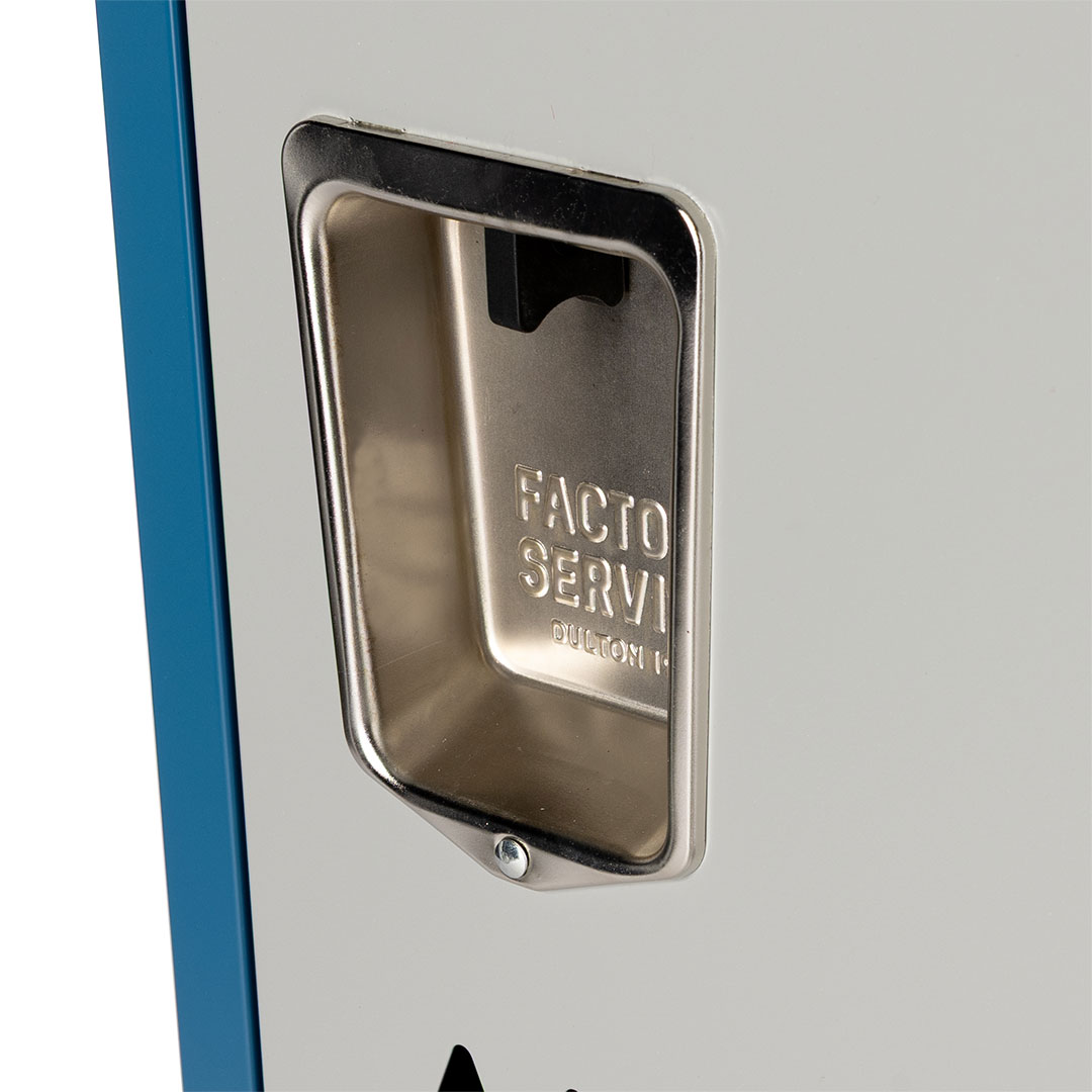 オフィスで素直にロッカーとして使うのはもちろんですが、シューズボックスやファッション小物用のワードローブとして自室に備えたいプロダクト。棚受けパーツを動かせば、棚板をお好みの高さに調節できるので、用途に応じて、上から下まで余すことなく収納できます。取っ手部分の黒いトリガーに南京錠を使用すれば施錠も可能。個性溢れる2トーンカラーが腕の見せどころです。