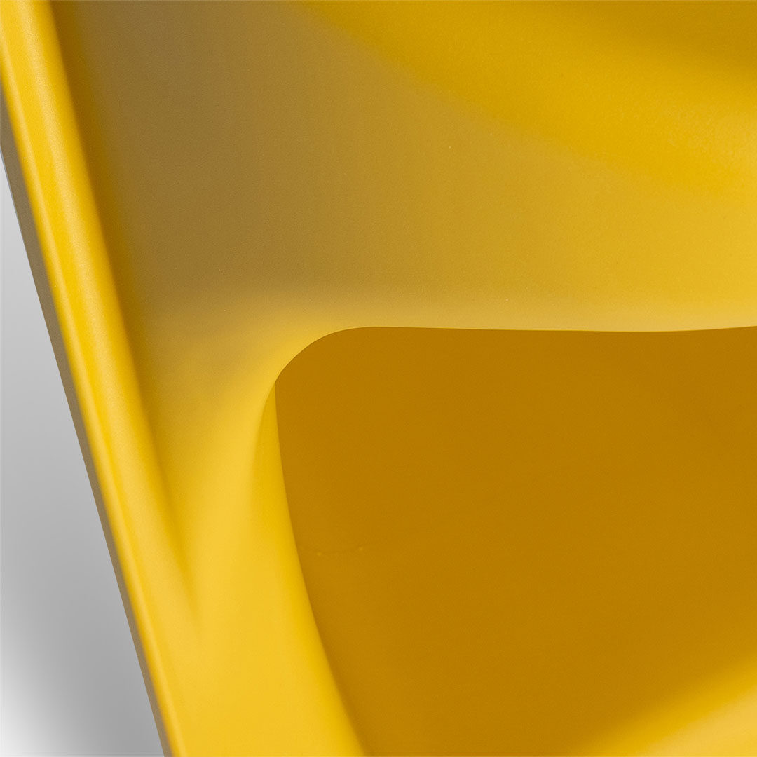 その名の通り可愛らしいフォルムが特徴的なダッキーチェア。 座面から背もたれ、脚部までが一体化したデザインの屋内外兼用の椅子です。 奥行きのある座面と程よい角度の背もたれがもたらす座り心地に、身も心もリラックスします。 脚部は空洞になっており、飲食店や屋外での使用時には、手荷物の収納スペースに。 インテリアとして小ぶりな観葉植物や雑貨などを飾ってみるのも良さそうです。 スタッキングも可能なので、使用後には場所を取らず一箇所にまとめておくことも。 ユニークな見た目と豊富なカラーバリエーションで、屋内外問わず空間のアクセントに。
