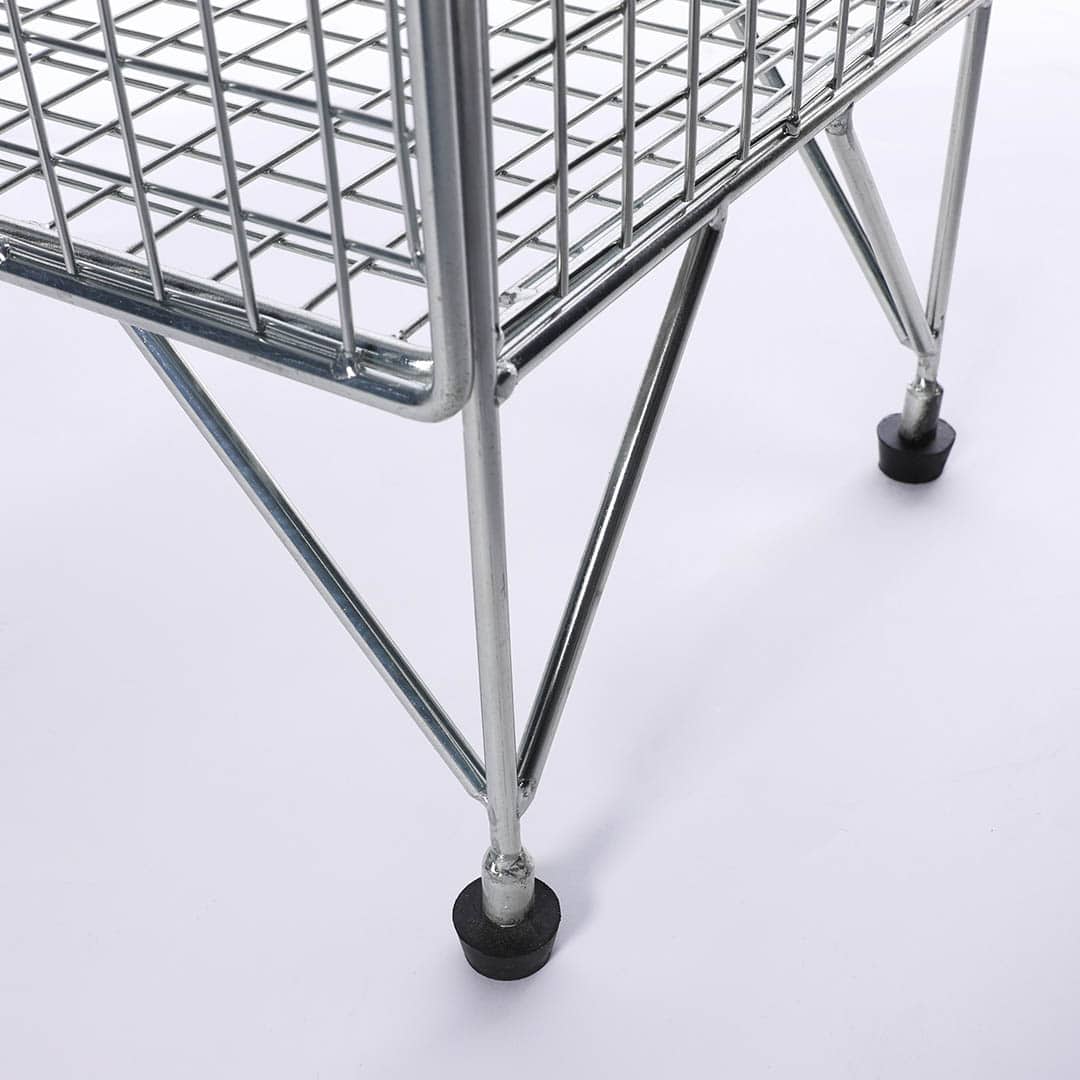 アイアンの無骨さとシルバーのクリーンな印象が溶け合ったワイヤーロッカー。 シンプルで無駄のない形状が、空間に軽やかな抜け感をもたらします。 日用品や雑貨、観葉植物、アパレル小物など、あらゆるモノを美しくまとめられ、ご自宅から店舗でのディスプレイ什器にも。 アジャスター付きで設置場所を選ばず、奥行きが統一されているので、複数台を組み合わせたアレンジもおすすめです。 工業的でワイルドな表情と、洗練されたクールな表情。 組み合わせるインテリアや空間によって表情が変化する、収納を愉しむ一台です。
