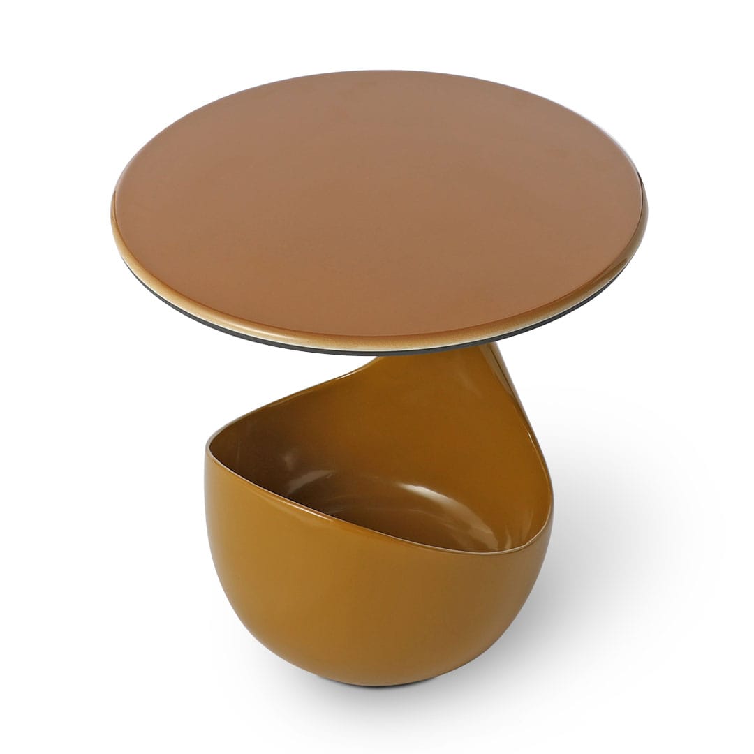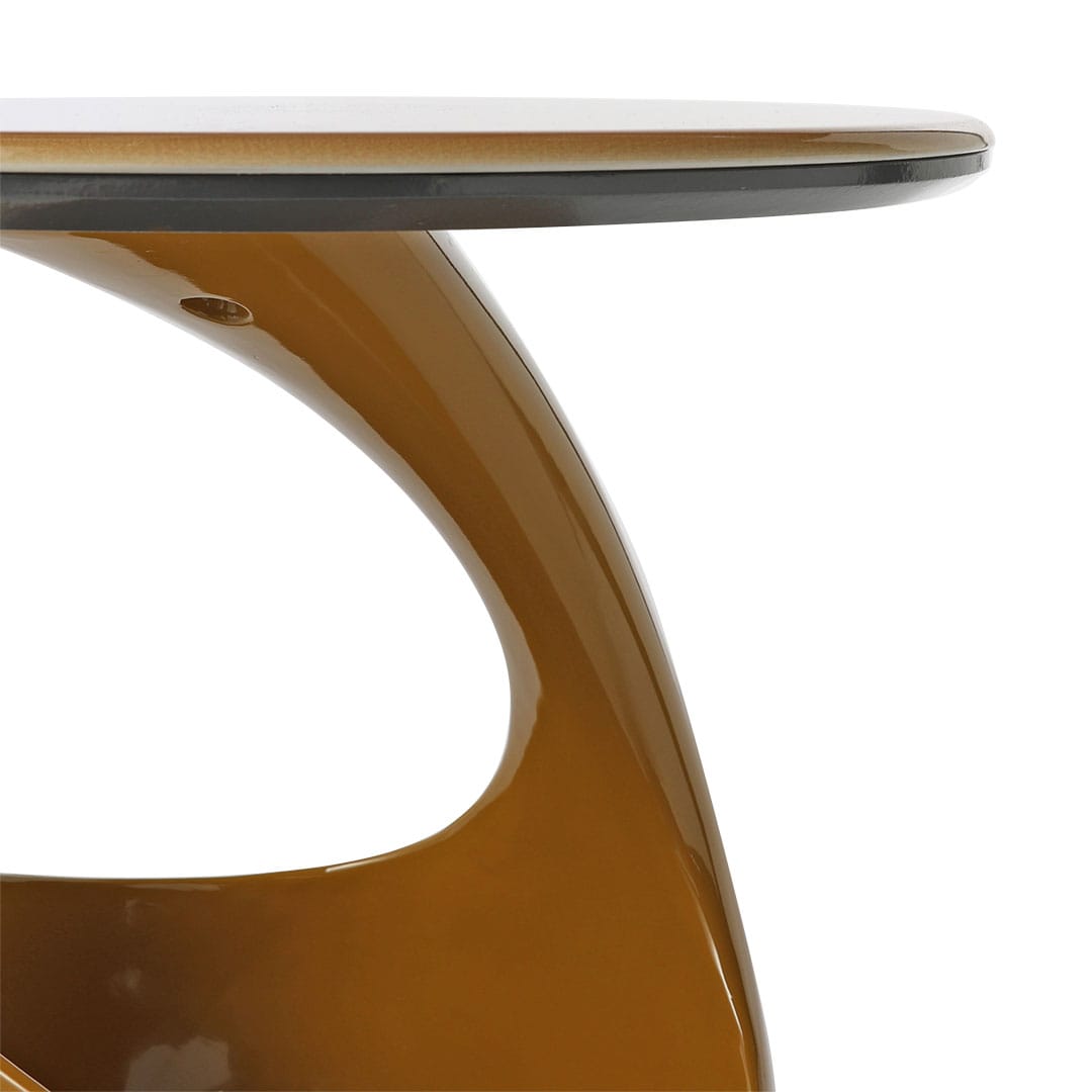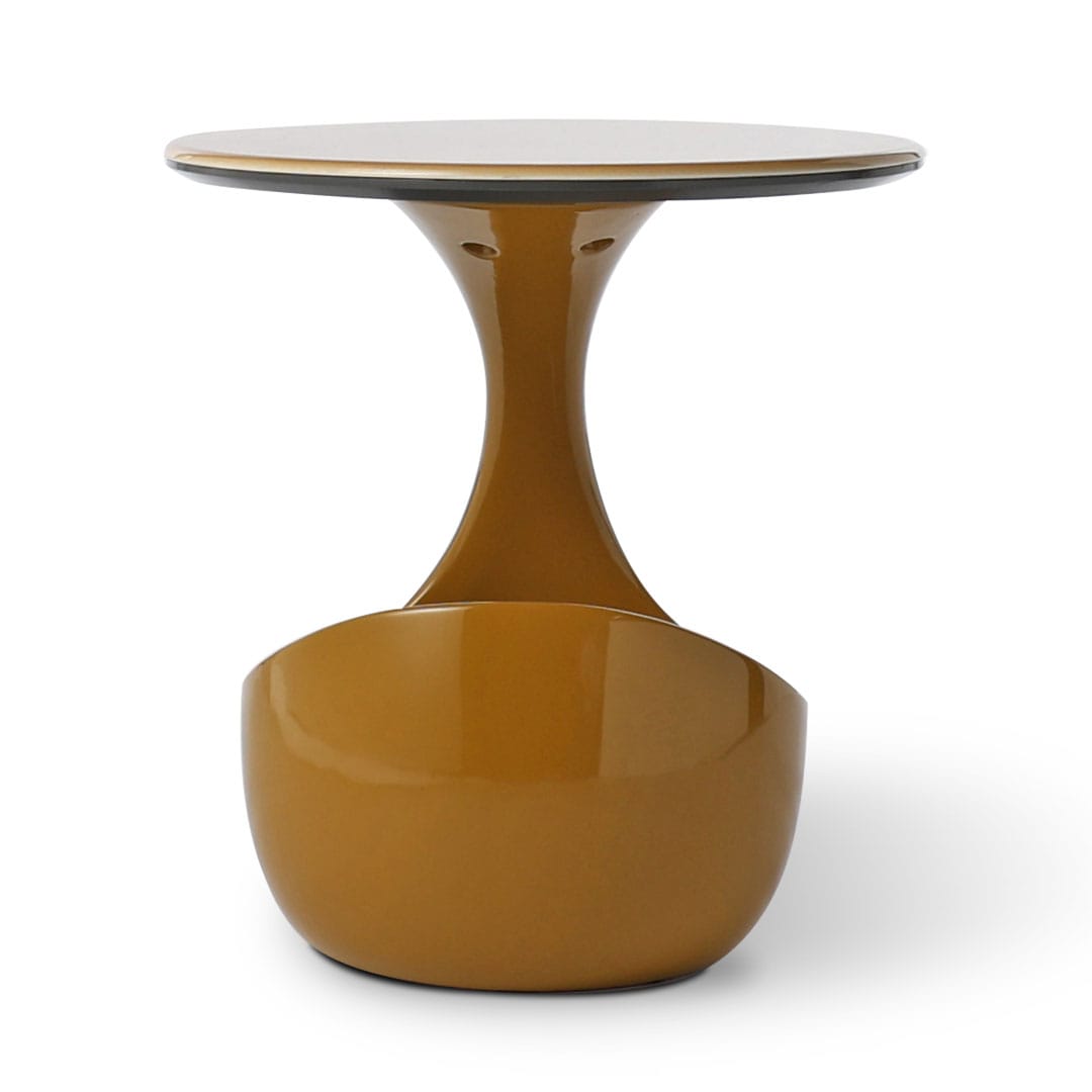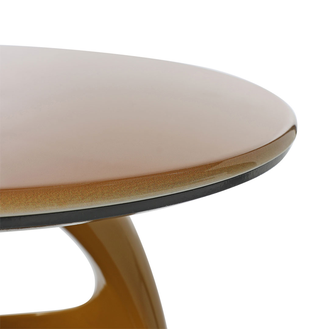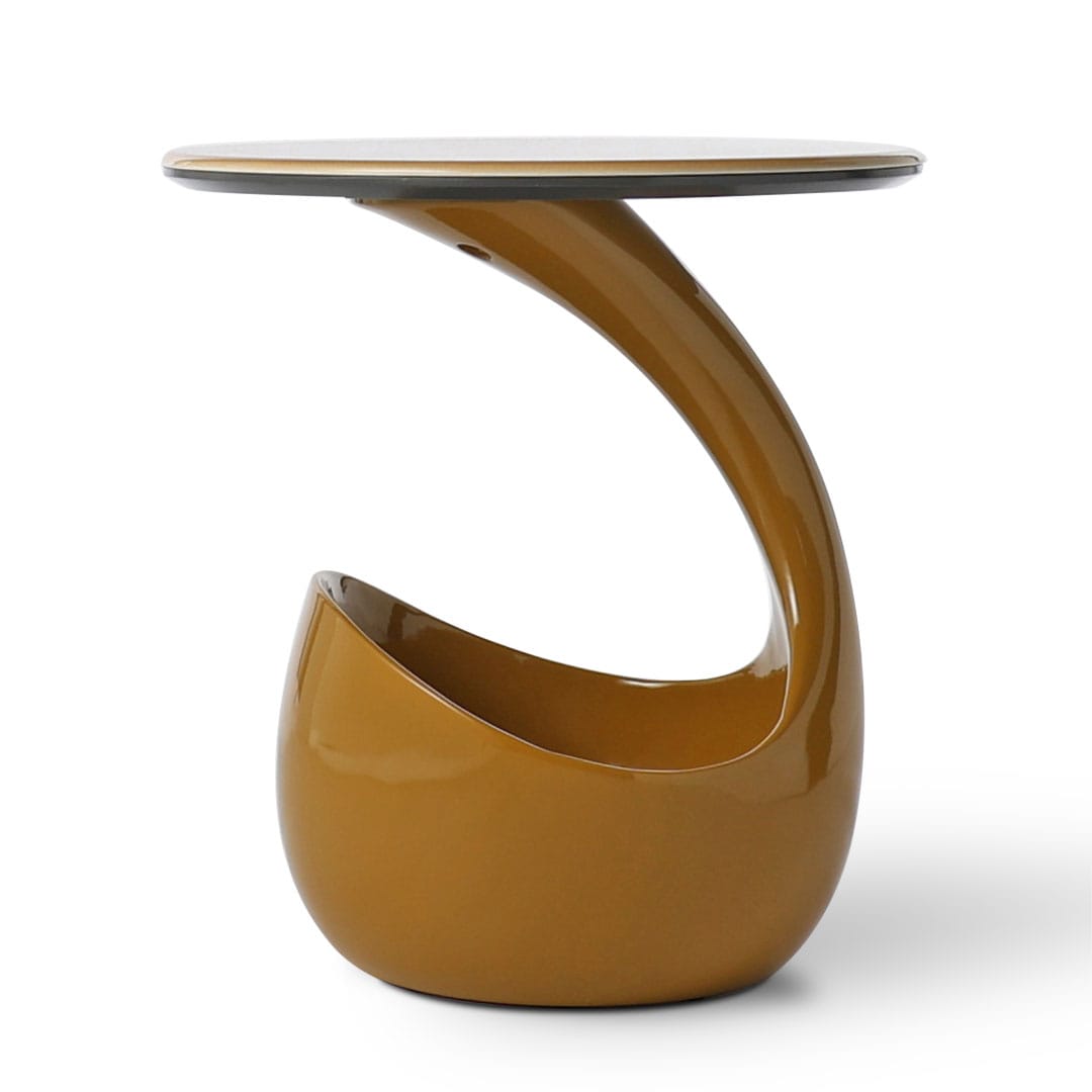 丸みを帯びたフォルムと心地よい色合いが印象的なサイドテーブル。ラウンド天板には、高級感と耐久性を兼ね備えたシンタードストーン(焼結石)を使用しています。ドーム型の台座は収納力も高く、日常に安心感をもたらします。やわらかなカラーリングと有機的なシルエットが空間にアクセントを添える、デザインと実用性を兼ね備えた一台です。
