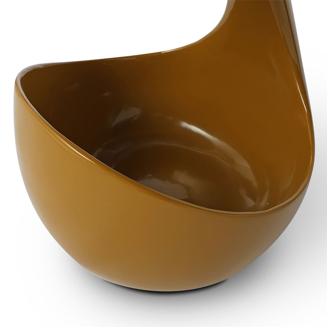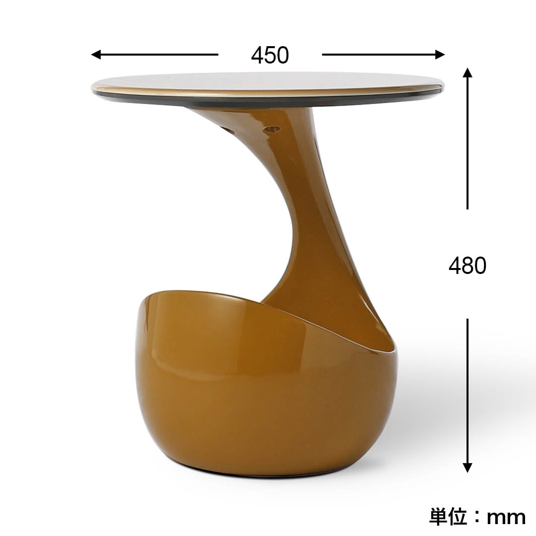 天板から台座まで滑らかにつながる特徴的な形状。角のないデザインは空間に柔らかな印象を加え、オブジェのような存在感を演出します。置くだけで雰囲気が整う、視覚的にも心地よいデザインです。