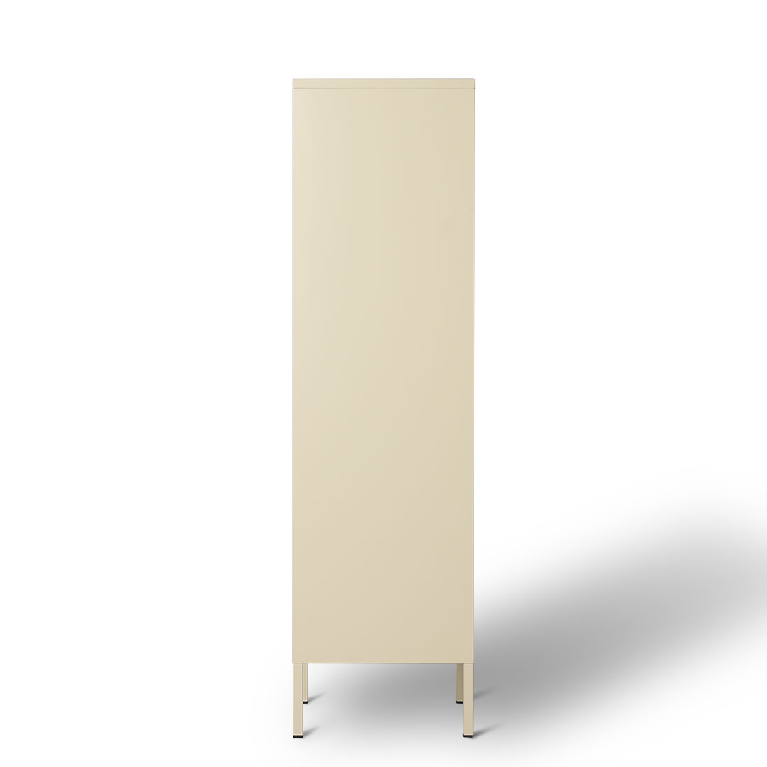 オフィスで素直にロッカーとして使うのはもちろんですが、シューズボックスやファッション小物用のワードローブとして自室に備えたいプロダクト。 取っ手部分の黒いトリガーに南京錠を使用すれば施錠も可能。 ビンテージテイストでありながら、取り入れやすいカラーリングが腕の見せどころです。