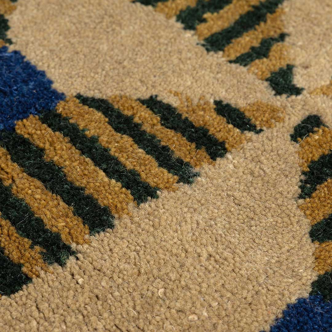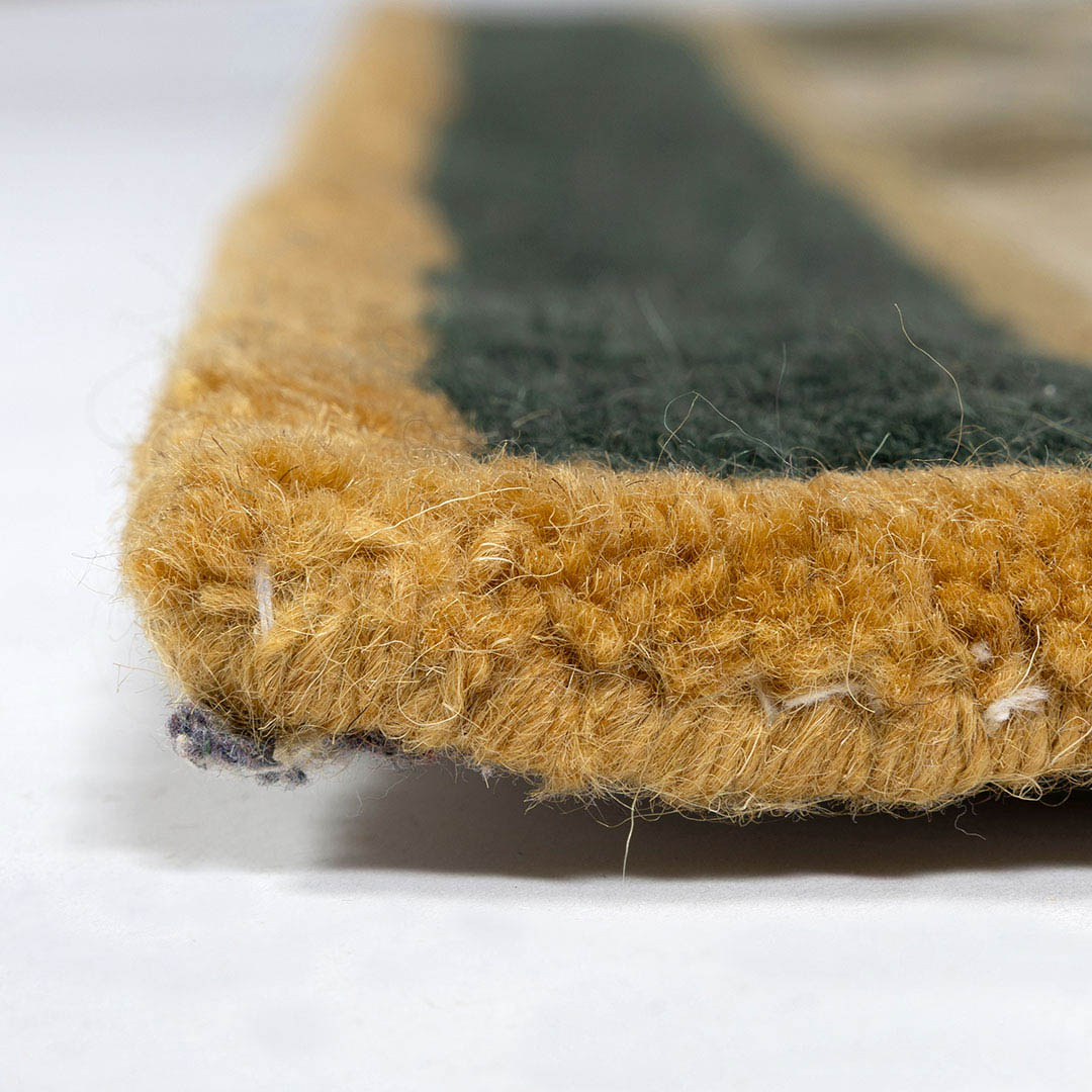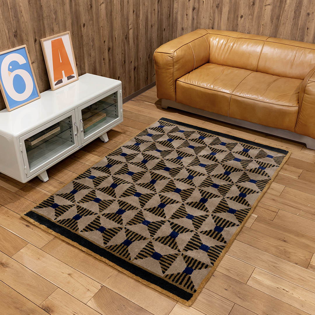 タフで風合いのあるインドウールを使用したタフト織ラグ。 オリジナルの配色と幾何学パターンが、重厚な家具の良き相棒として、住空間に調和をもたらします。 ハンドタフトで織り込まれた、短めながら立体感のある毛足は、踏み心地がよく、使い込むほどに暮らしへの馴染みを感じられます。 天然素材ならではのラフな表情から、味わいが増し、落ち着きのある表情へ。 オールシーズン通して育て上げたい一枚です。 一人暮らしやコンパクトなリビングでも、レイアウトしやすい定番サイズ(130×190cm)。