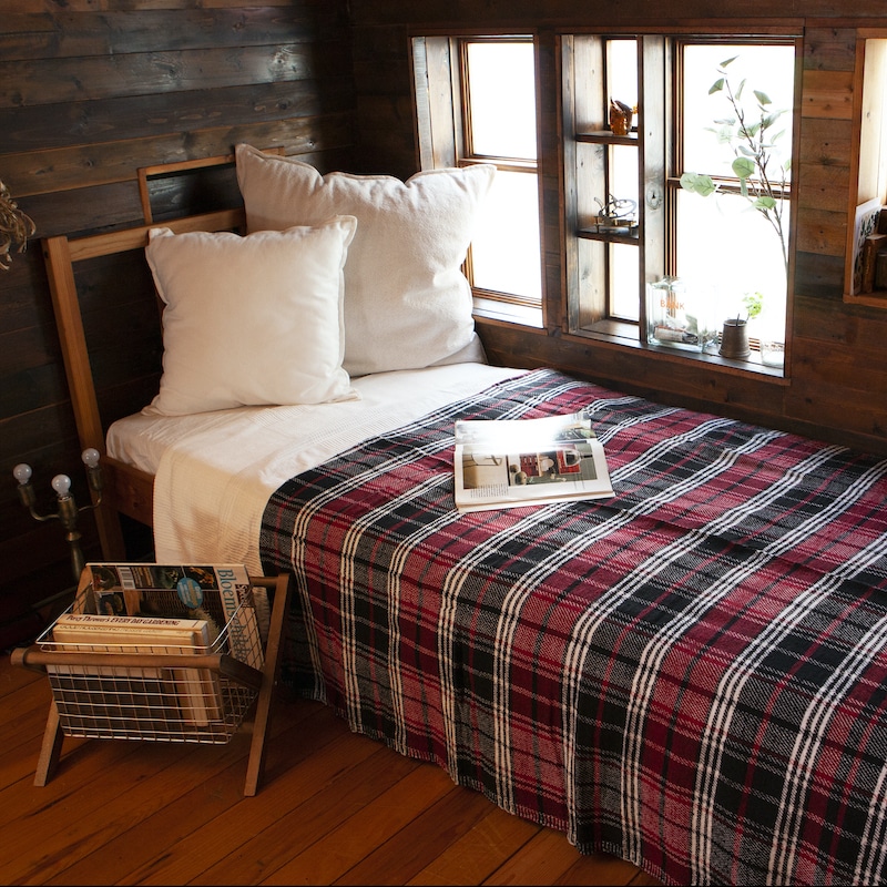 秋冬の醍醐味。それは、ひんやりした空気を感じながら、ぬくぬくと温まること。その光景を思い浮かべるだけで、幸福感に浸れます。広げたり、折りたたんだり、すっぽり身体を包んだり。温もり溢れる4色展開のチェック柄は、インテリアとの調和も。一枚あるだけで、色々な幸福感が味わえるはず。