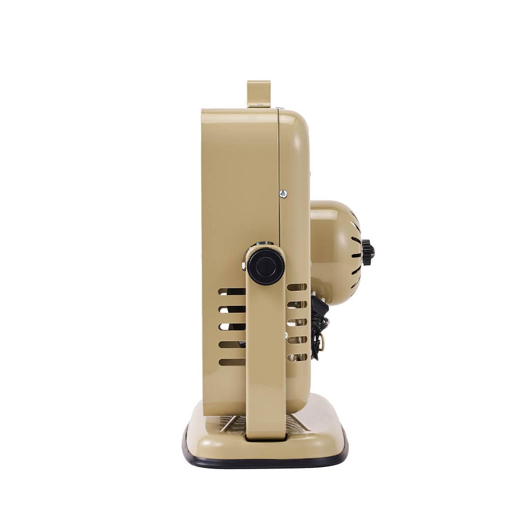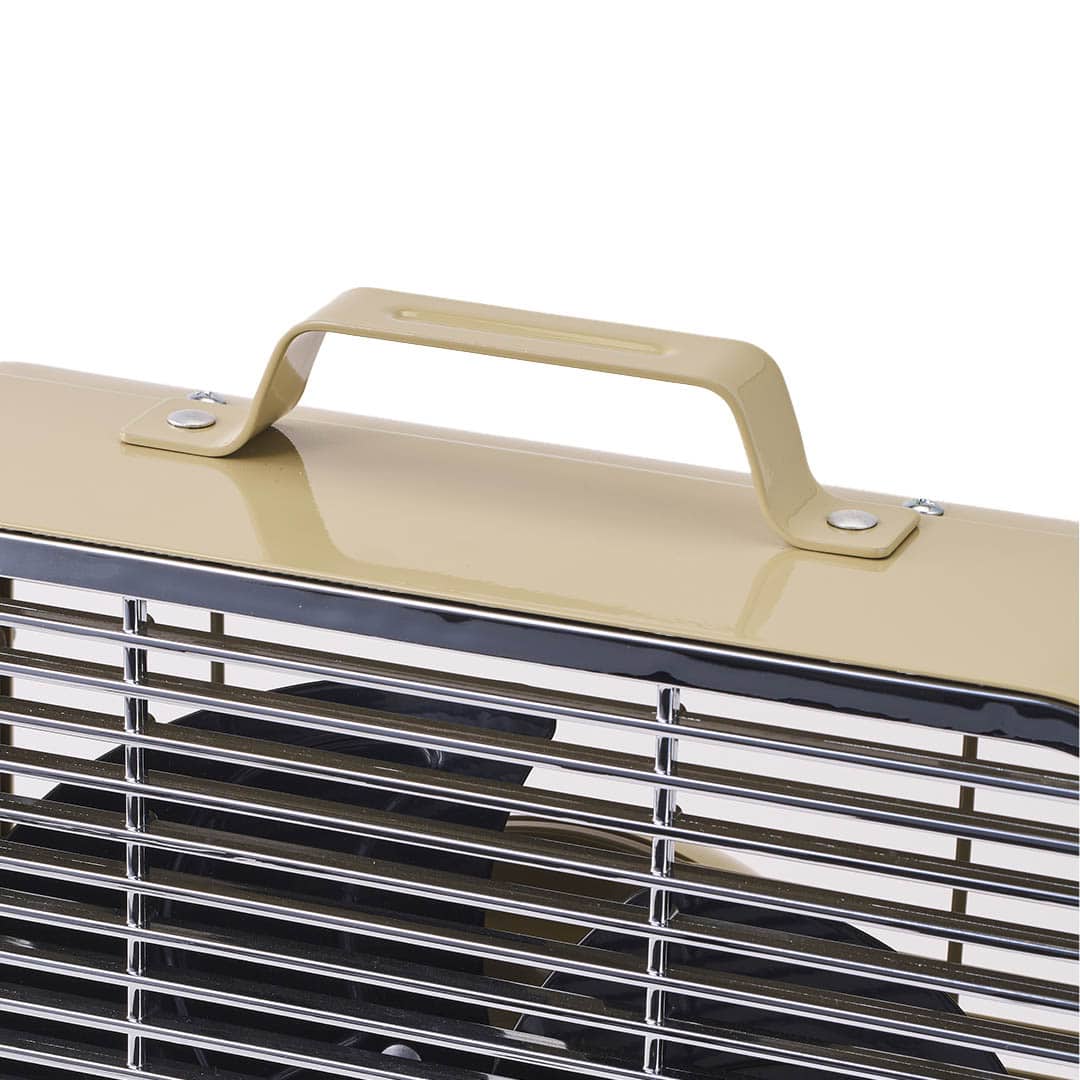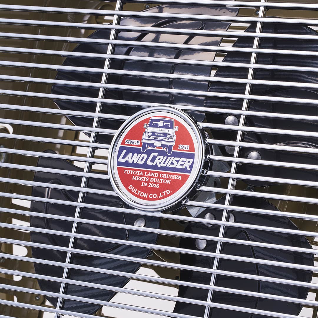 <インダストリアルな魅力が光る、レトロデザインのサーキュレーター。ランドクルーザーのシグネチャーカラーでもあり、どんなインテリアにもシックになじむ、これまで無かったベージュカラーの別注品>インダストリアルデザインがインテリアにムードを与えてくれるサーキュレーターを、ランドクルーザーを象徴するカラーであるベージュで製作。無骨で機能的、そのソリッドなデザインがランドクルーザーとの親和性を強く感じさせてくれる逸品。もちろん、サーキュレーターとしても、シンプルな操作性を兼ね揃えた使いやすいプロダクトです。0°〜90°の角度調整・3段階の風量切り替え・上部には運びやすい持ち手付き・背面にはコードをまとめられるコードホルダーが付属といった、痒い所に手が届いた機能的なデザイン。デザインのアクセントになっている中央のプレートは、元々のデザインをオマージュしつつ、ダルトン創業年である1988年にランドクルーザーカタログの表紙を飾った“70 WAGON”でデザイン。本コラボレーションのキーとなるエンブレムになっています。