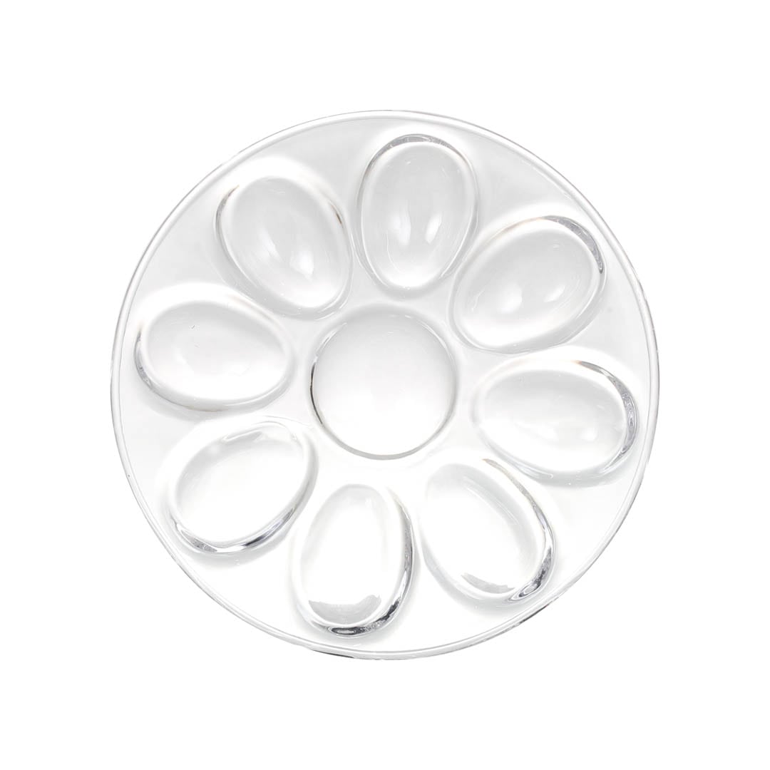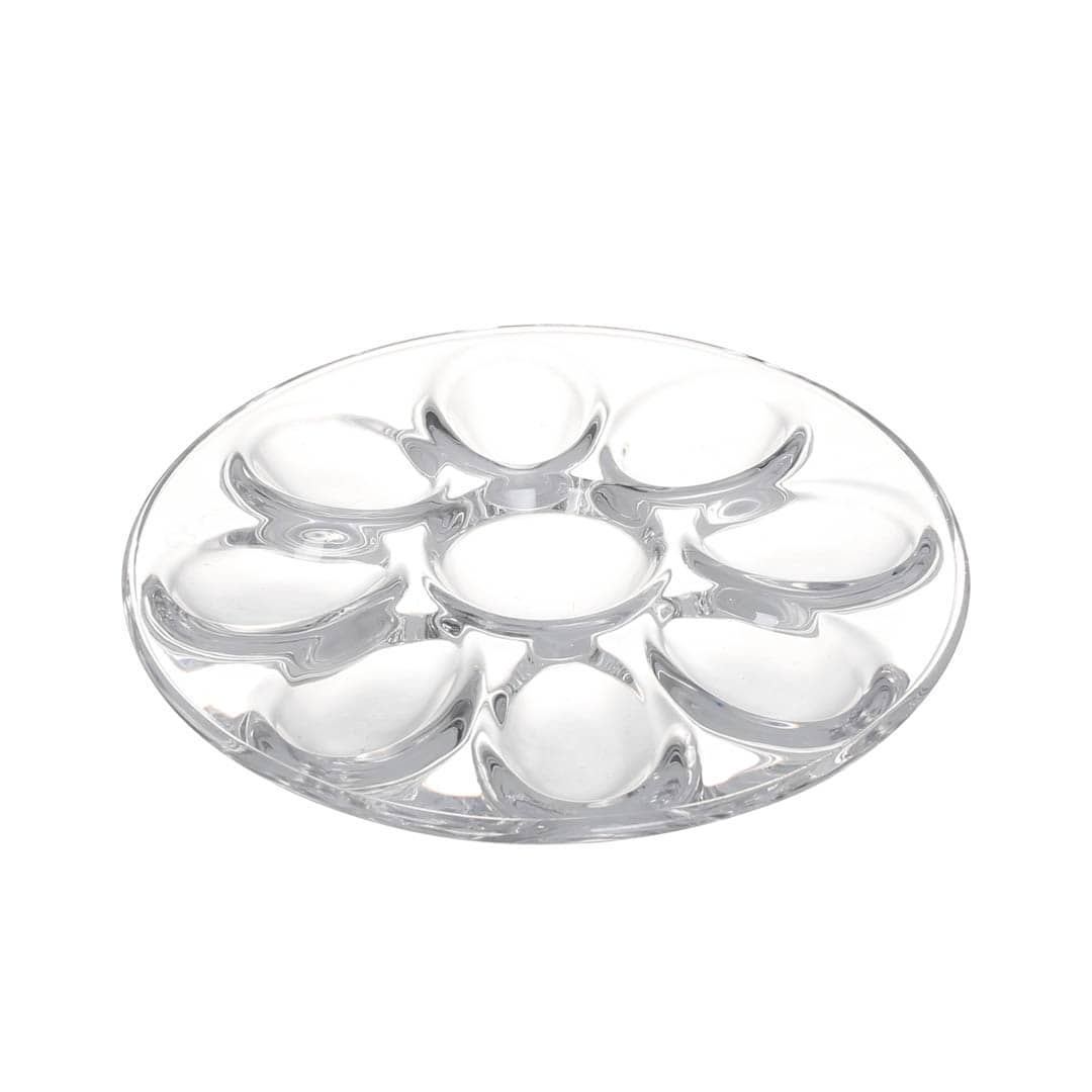 卵形の窪みがついたガラスのトレイ。 食材やスパイスをマスに合わせて盛り付けるだけで上級者のような仕上がりに。 ダイニングでは卵料理や前菜、ソースやジャムなどを。 食品の他にもアクセサリーやビーズ、多肉植物、フィギュアなどの小物を置いて飾るのもおすすめ。 厚みのあるソーダガラスがどんなものでも美味しく美しく演出します。