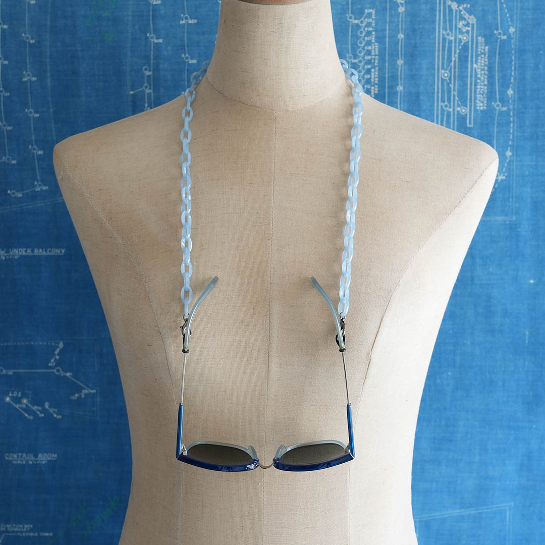 ■材質の特性上、リングの接合箇所に線が見える場合がございます。予めご了承ください。■アセテートは高温多湿の環境下では変形しやすい特性があります。車内や直射日光の当たる場所を避けて保管してください。■アセテートは植物由来のセルロースを原料とした素材ですが、製品の一部に金属パーツを使用しています。金属アレルギー等で肌に合わない場合は直ちにご使用をおやめください。■ハンドメイドの製造工程上、色や柄、 形状・サイズに若干の個体差がございます。■衣服や毛髪に引っかかる可能性がございますのでご注意ください。■使用を続けていく中で、経年劣化による破損が見られた際はご使用をおやめください。■強い力で引っ張るとチェーンが破損する可能性がございます。■メガネの形状によってはご使用いただけないものもございます。■本製品は眼鏡用です。ただし、眼鏡を完全に固定するものではありません。備考