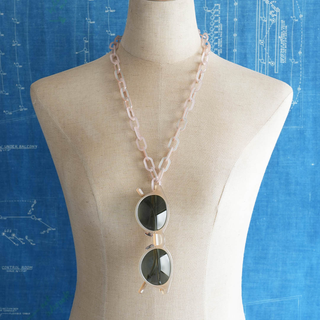 2通りのスタイルで使い分けできるメガネチェーン。 一般的なグラスコードとしての使い方だけでなく、ネックレスのように連結して、畳んだメガネを引っ掛けることもできます。 素材には、なめらかな肌触りとクリアな色合いが特徴のアセテートを採用。 どのカラーをどのスタイルで取り入れるか、ファッションの一部としてお愉しみください。 ギフトにも嬉しい、華やかなデザインパッケージ付き。