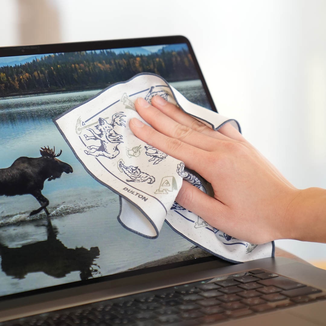 日々の何気ないひと拭き時間が少しだけ愉しくなるマイクロファイバークロス。 動物たちがそれぞれの特性を生かして、真剣にお掃除する様子がなんとも愛おしく、愛着が湧くデザインです。 メガネやカメラのレンズから、スマホやタブレット、PCの液晶画面まで。 メガネクロスとしては大判の20×20cm。厚手の生地感でマルチに活躍します。 個性豊かなお掃除仲間たちとのひと拭きをお愉しみください。