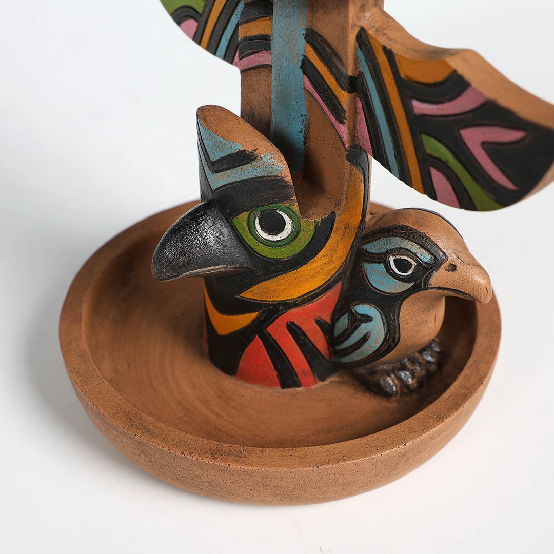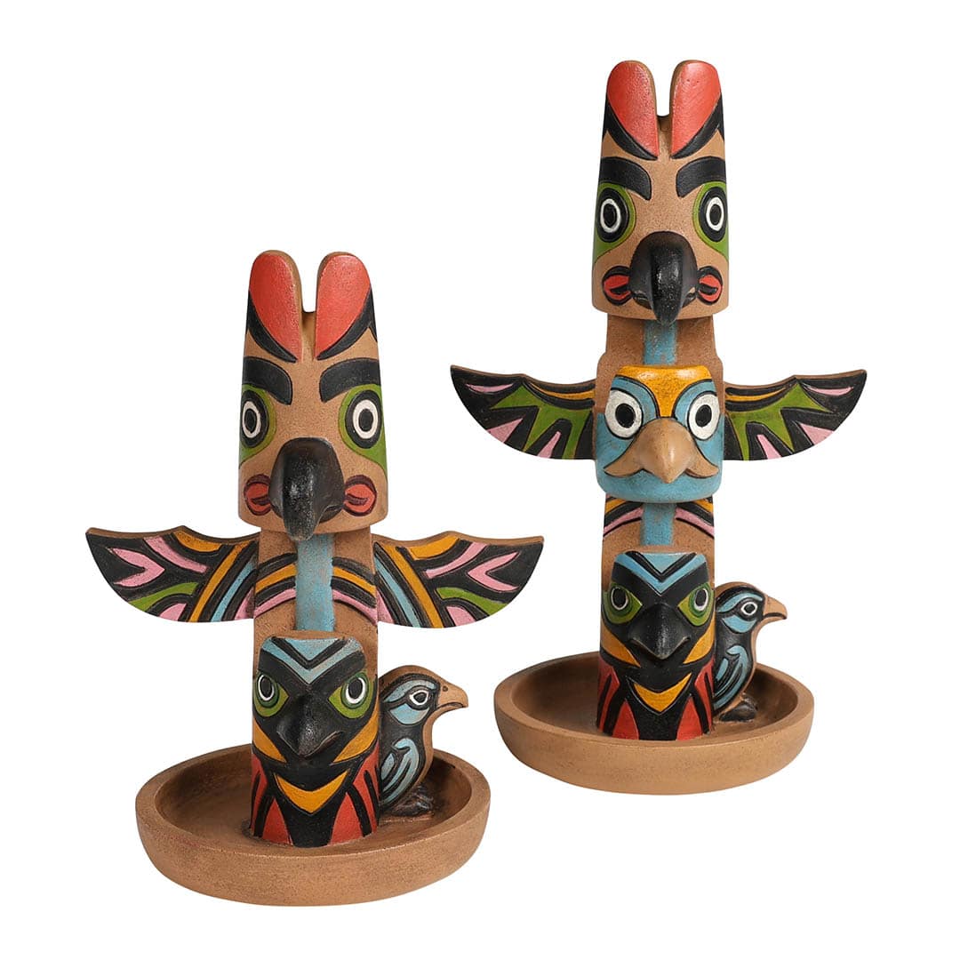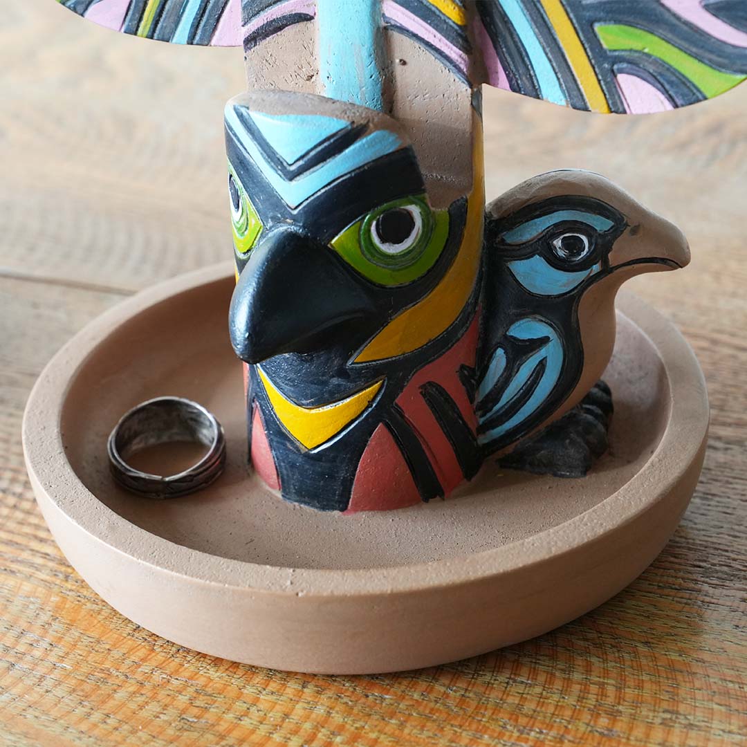 ユニークなトーテムポール型メガネ置き。 眼鏡やサングラスを掛けた姿は、どこか違和感がありながらも馴染んでいるような、不思議なアイテムです。 日常に抜け感を演出しつつ、デスクや玄関など、省スペースでも意外な収納力を発揮します。 下部のプレートは、鍵やアクセサリーなどの小物置きとしても◎。