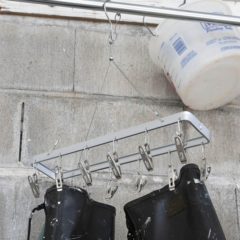 アルミとステンレス、2つの素材の良いとこ取りをしたピンチハンガー。 こだわりのオールシルバー仕上げは清潔感を演出しながらも、 ある種の工業感すら感じられます。 ステンレスのピンチは重たいものも安心して挟めるホールド力。 インテリアにもスッと溶け込み、用途によって使い分けたくなる、日常には欠かせないアイテムです。