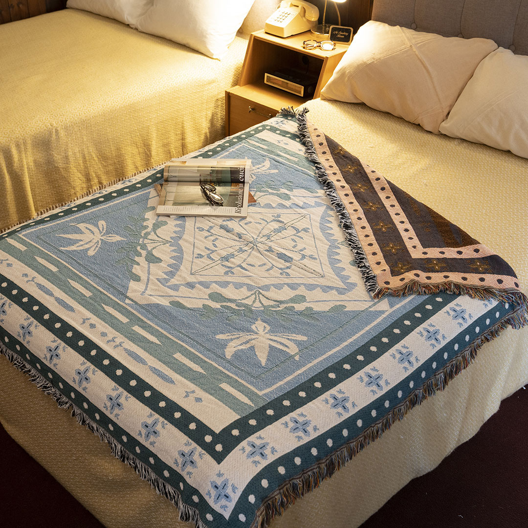 リバーシブルで色の違いが楽しめるジャガード織りのマルチクロス。 薄手のつくりなので、オールシーズン自由自在に活躍してくれます。 アウトドアではレジャーシート代わりや羽織として使ったり、ソファカバーやベッドの上にかぶせてアクセントにしたり。 さっと広げるだけで、手軽に空間の雰囲気を変えられる扱いやすさです。