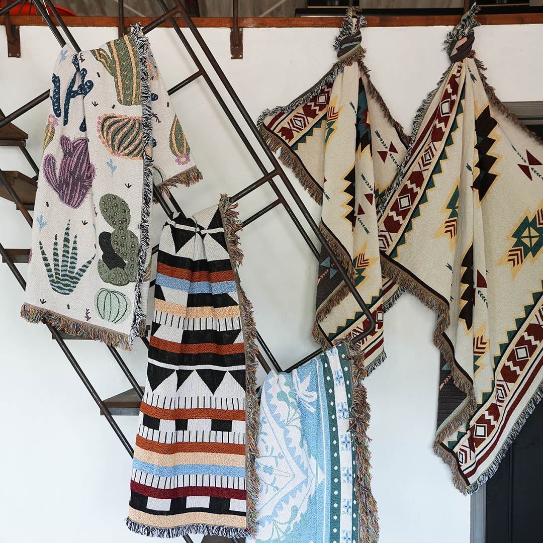 リバーシブルで色の違いが楽しめるジャガード織りのマルチクロス。 薄手のつくりなので、オールシーズン自由自在に活躍してくれます。 アウトドアではレジャーシート代わりや羽織として使ったり、ソファカバーやベッドの上にかぶせてアクセントにしたり。 さっと広げるだけで、手軽に空間の雰囲気を変えられる扱いやすさです。