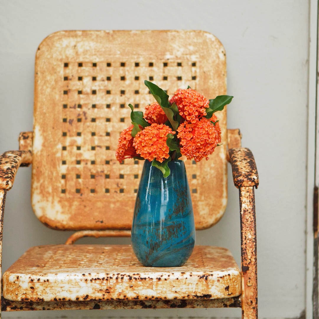 鮮やかな色合いのマーブル模様が目を惹くフラワーベース。 季節の花やドライフラワーを組み合わせるのはもちろん、単体でもお部屋に彩りを添えます。 生けたときに花が広がらず扱いやすい、ベーシックな形です。 インテリアとしても映える、風合い豊かなハンドメイドの表情をお愉しみください。