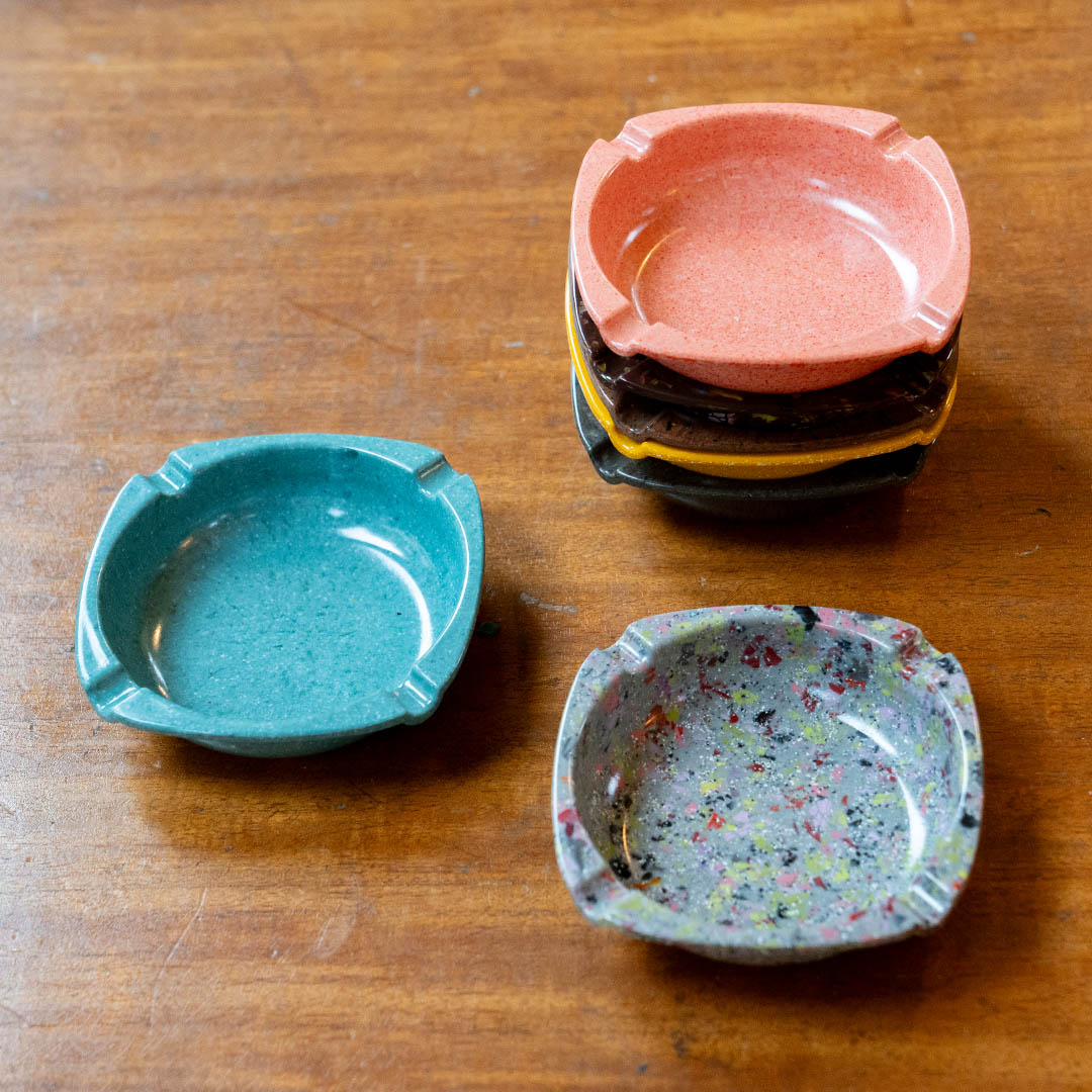 リユースのメラミン材を混ぜ込んでつくられたアッシュトレイ。 一点一点、色や模様の出方に個性があり、奥行きがあるのが特徴です。 灰皿としてだけでなく、アクセサリーなど、細かなアイテムを収納するのに適しています。 丈夫で使いやすく、重ねることができるので、場所を選ばずお使いいただけます。
