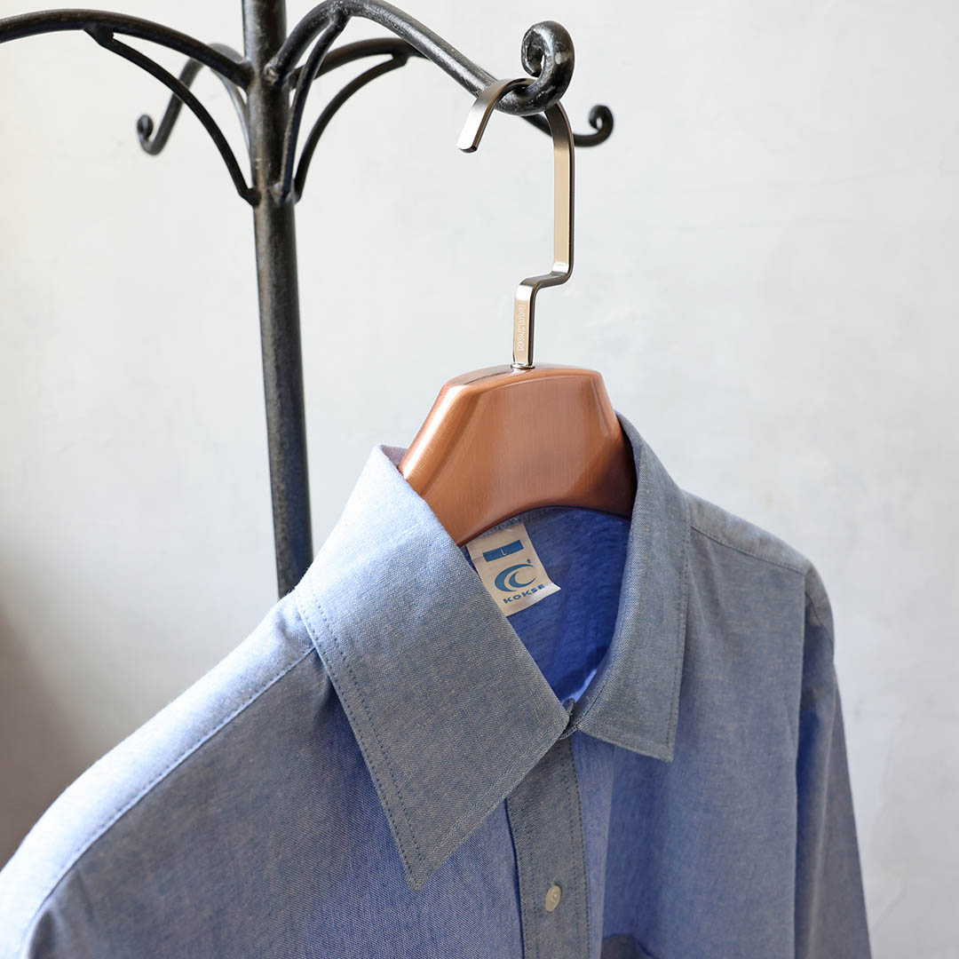 太めのシルエットと美しいステンレスの質感が際立つハンガー。 ホテルやテーラーに並ぶような高級感を漂わせます。 本体には、耐腐食・耐酸化性に優れた314ステンレスを使用している為、一張羅のお供として長くお使いいただけます。 フックは丈夫なスチール製。側面にさりげなくDULTONのレーザーロゴを施しました。 コートやジャケット、ボトムスなど、大切な一着を型崩れから守り、日常のクローゼットを格上げします。