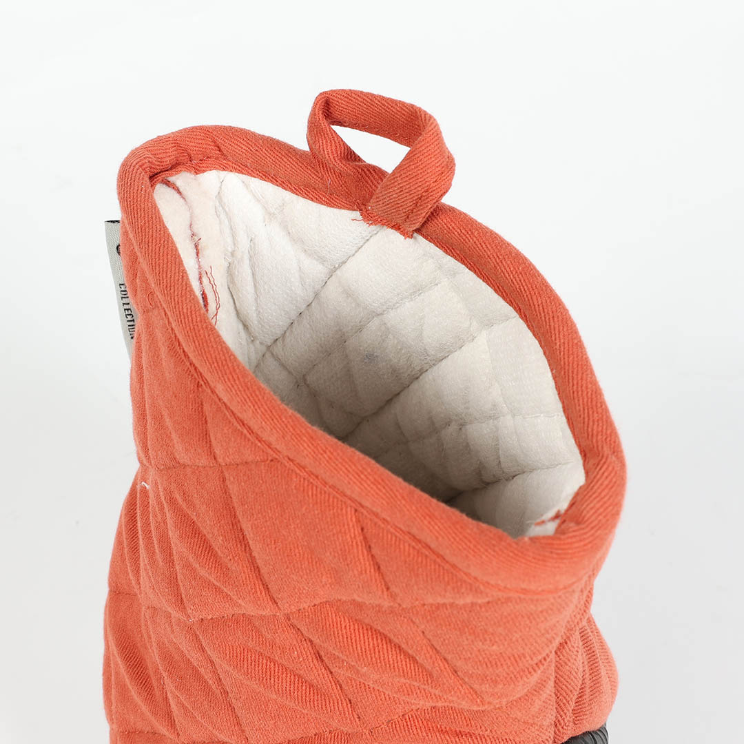 キッチンでもアウトドアでも頼れるタフさと、豊富なカラーバリエーションが魅力のミトン。 丸みを帯びた肉厚なフォルムが手にスッと馴染み、使うたびに心地よさを感じます。 耐熱温度は安心の180℃。愛らしいパペットデザインからは想像できない、確かな実力派です。 自宅での料理からキャンプ飯まで、シーンを問わず使えて映える鍋つかみです。