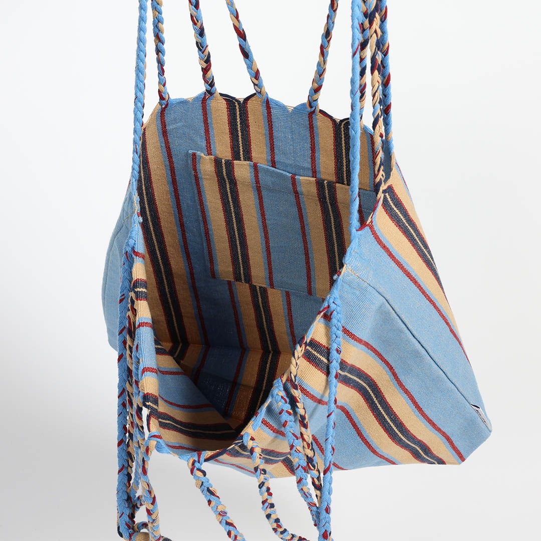 ハンモックのサスペンション部分が持ち手のデザインになったトートバッグ。 春夏〜秋冬と季節に合わせやすく、複数所有したくなる豊富なカラー展開です。 多色使いで、コーディネートに程よいアクセントを加えます。 マチつきで荷物が安定するので、なんとなく置いても絵になる。 織り方やデザインからトラディショナルな魅力を感じられるバッグです。