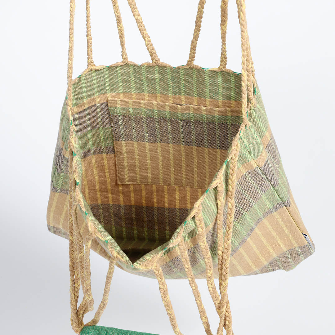 ハンモックのサスペンション部分が持ち手のデザインになったトートバッグ。 春夏〜秋冬と季節に合わせやすく、複数所有したくなる豊富なカラー展開です。 多色使いで、コーディネートに程よいアクセントを加えます。 マチつきで荷物が安定するので、なんとなく置いても絵になる。 織り方やデザインからトラディショナルな魅力を感じられるバッグです。