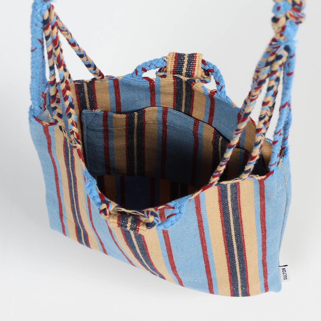 ■本製品は洗濯できません。お手入れの際は、中性洗剤を含ませた柔らかい布で汚れを拭き取ってください。■生地の製造工程上、他の衣類等に色移りすることがあります。白物淡色物との組み合わせはご注意ください。■濡れたままでの放置・使用はおやめください。衣服などへの色移りの原因となります。■本製品はハンドメイドで生産されており、サイズや織り方に多少の個体差が生じます。また、糸のほつれや糸飛びがみられる場合があります。■持ち手の紐と生地が繋がったつくりになっています。強く引っ張ったりすると生地にほつれが生じます。■繊細なつくりのため、鋭利な物や尖った物を入れないようご注意ください。■糸がほつれた場合は無理に引っ張らず、ハサミで丁寧にカットしてください。■直射日光や強い照明などを長時間受けますと褪色することがあります。■火気や熱源のそばに置かないでください。■ご購入時、インド綿特有のにおいが気になる場合は、ご使用前に風通しの良いところで陰干ししてください。