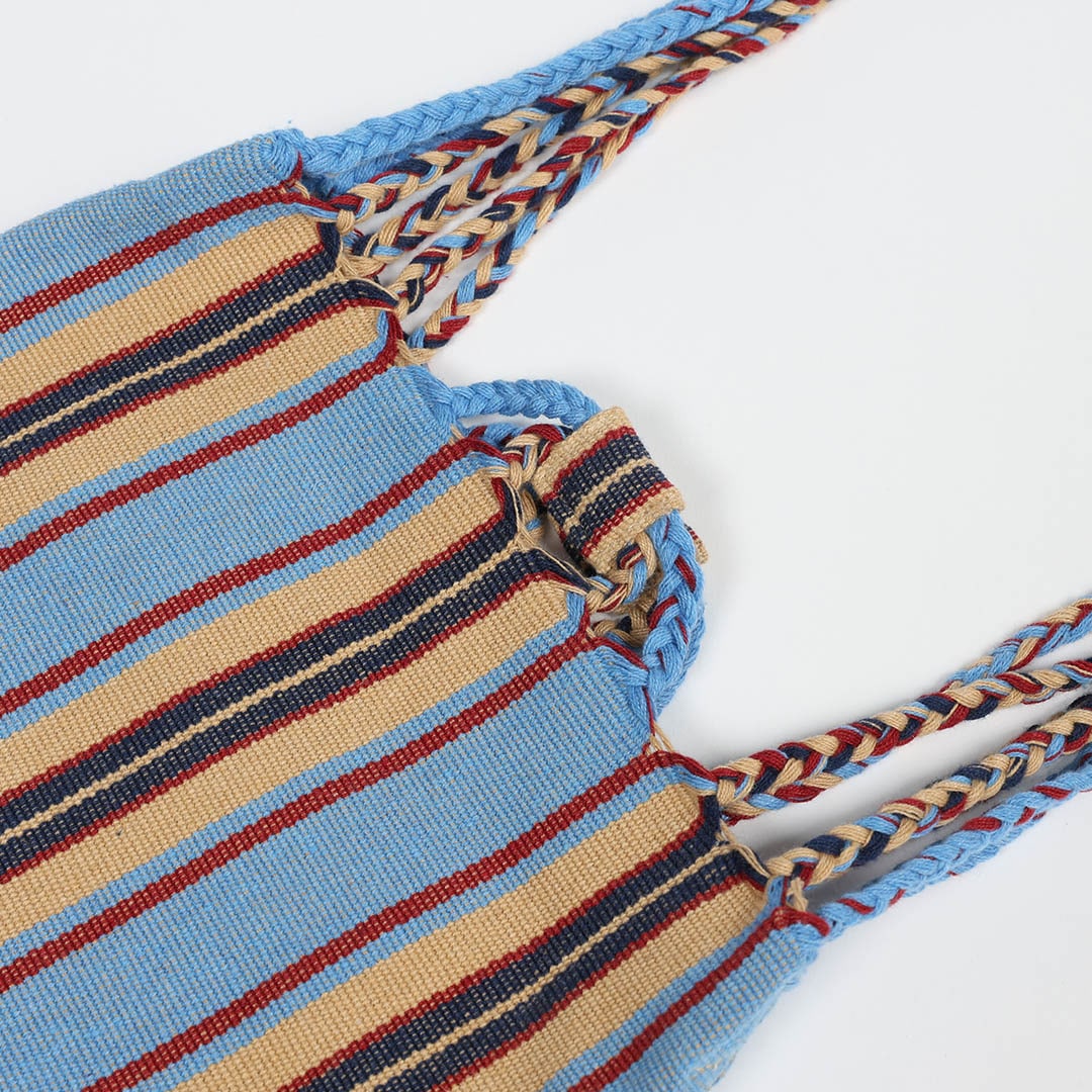 ハンモックのサスペンション部分がストラップのデザインになったサコッシュ。春夏〜秋冬と季節に合わせやすく、複数所有したくなる豊富なカラー展開です。多色使いで、コーディネートに程よいアクセントを加えます。織り方やデザインからトラディショナルな魅力を感じられるバッグです。