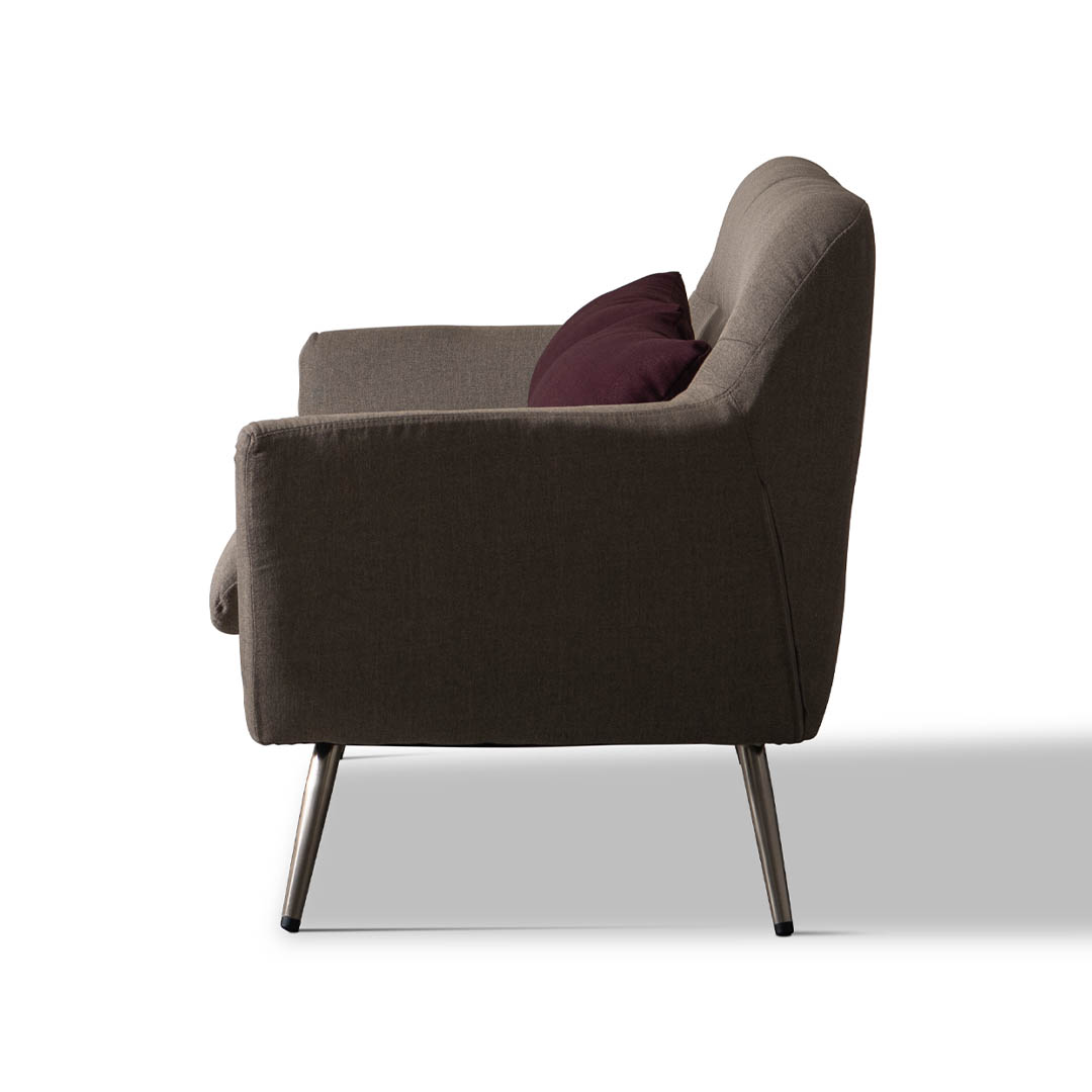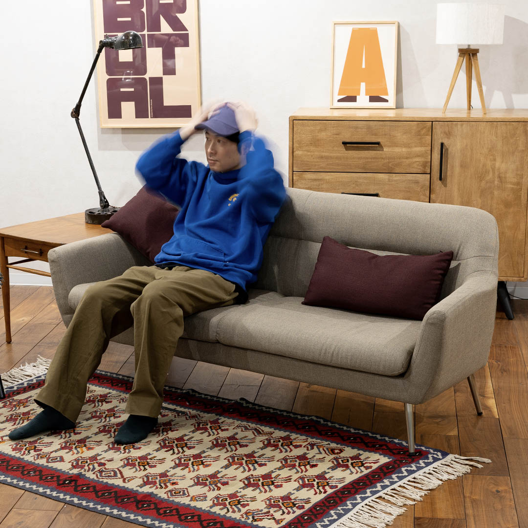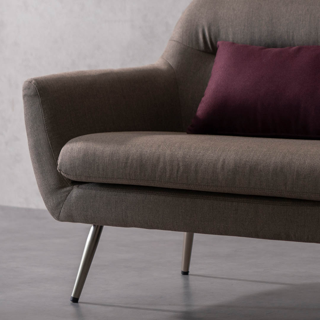 シンプルで圧迫感のないフレームと細身のスチール脚を組み合わせた2人掛けソファ。無駄のない美しいフォルムが、リビング・書斎・オフィス等あらゆる空間を上質に演出します。無骨すぎず上品、コンパクトながらしっかり寛げるデザインです。