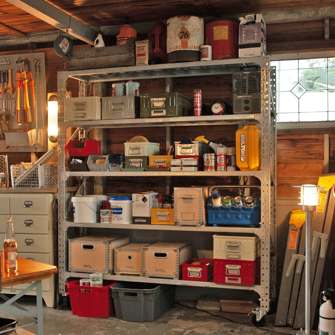 ガルバナイズド(亜鉛メッキ)の魅力が詰まった業務用・工業用シェルフ。 パーツ一点一点のタフさ、組み上がった際の明らかな重厚感を思えば、ラフな仕上げも納得です。 憧れのショップには、商品だけでなく、それらを支え続ける什器が必ず存在していると、彼らに改めて気付かされます。
