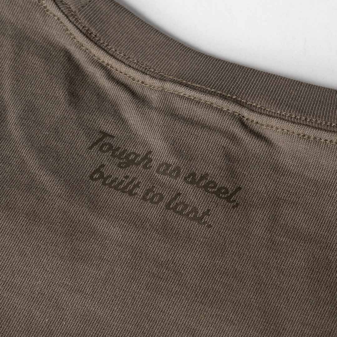【直営店・公式オンラインショップ限定デザイン】DULTONのロングセラー”METAL PRODUCTS"の色味を再現したTシャツ。胸元にはリッチな刺繍ロゴを施しました。厚手のボディは頼もしく、タフに使ってもへこたれない。METAL PRODUCTS同様、使い込んでこそ完成する一枚です。