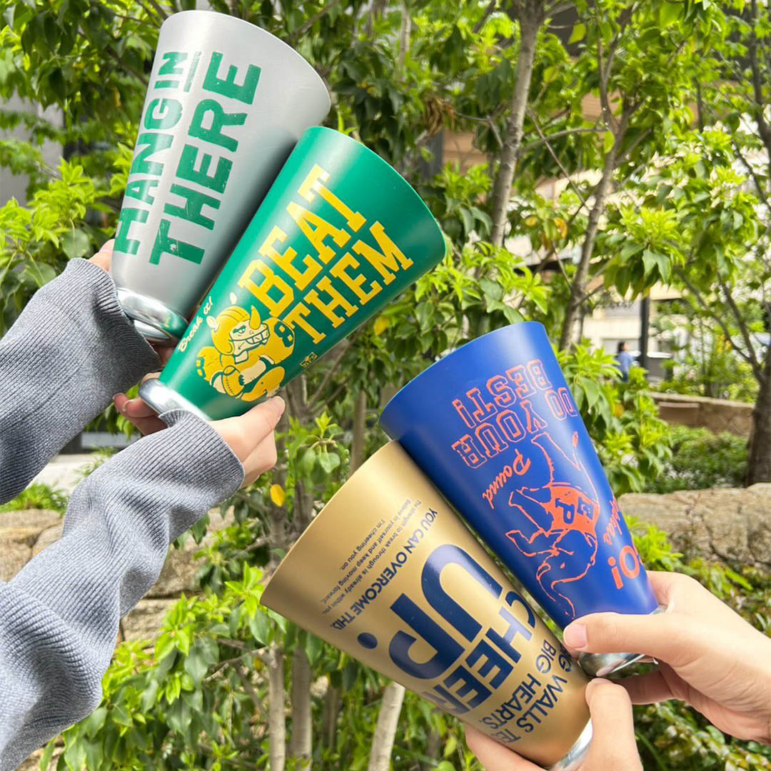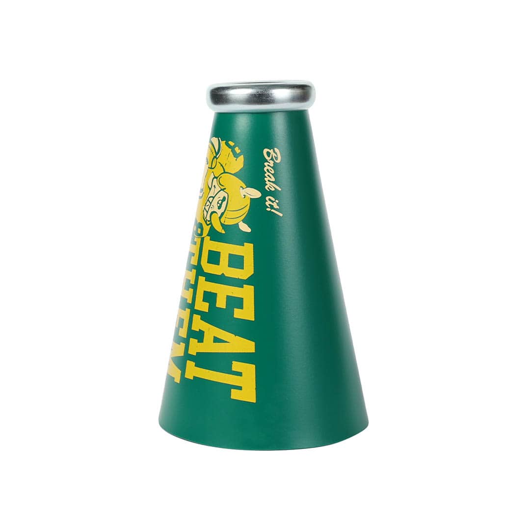 MADE IN USAの良質なボディにオリジナルデザインを落とし込んだメガホン。「TEAM DULTON」を軸に、応援メッセージをイラストとテキストで表現しました。特徴的な金具と掠れたプリントが無骨で趣のある風合いを演出。インテリアとしても映える、遊び心が詰まったアイテムです。