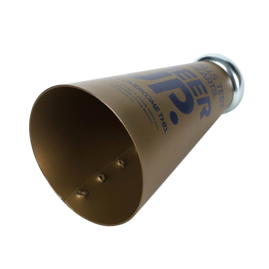 MADE IN USAの良質なボディにオリジナルデザインを落とし込んだメガホン。「TEAM DULTON」を軸に、応援メッセージをイラストとテキストで表現しました。特徴的な金具と掠れたプリントが無骨で趣のある風合いを演出。インテリアとしても映える、遊び心が詰まったアイテムです。