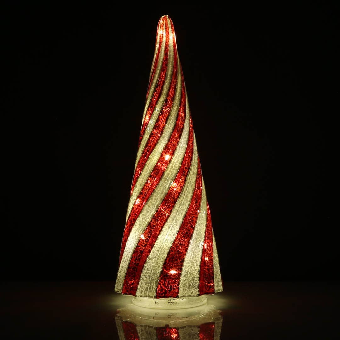 赤と白の螺旋模様がクリスマスムードを高めてくれるツリー型ライト。 無駄な装飾がないため、ポップになりすぎず、ディスプレイにアクセントを加えます。 明かりをつけるとガラスを通した光が煌めき幻想的に。