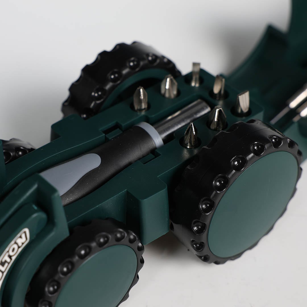 一見トラクターのおもちゃのように見える工具セット。 座席部分を開くと、ビットセット、ハンドル、ドライバーが収められています。 普段は棚に閉まってしまう工具も、これならインテリアとして飾っておきたくなるはず。 可愛らしいパッケージなので、D.I.Y好きなあの人へのギフトにも◎。