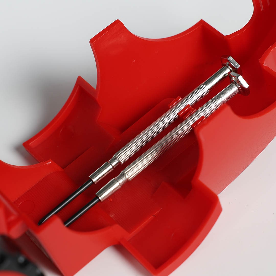 ■本製品は玩具ではありません。小さなお子様やペットの手の届かない所で使用・保管ください。 ■本製品は小さな部品が含まれます。小さなお子様やペットの誤飲には十分ご注意ください。 ■火のそばや熱源の近くでは使用しないでください。火災の原因となります。 ■製品の構造上、鋭利な部分がございますので使用・ 持運びの際は十分ご注意ください。 ■本製品を落としたり、強い衝撃を与えないでください。 ■本体や工具に割れ・欠け・磨耗 変形が見られる時は、ただちに使用をおやめください。 ■本製品は非絶縁工具です。電気の通じた回路や箇所でのご使用はおやめください。 ■工具の使用用途以外のご使用はおやめください。 ■本体を開閉する際は、中身が飛び出す恐れがございますので十分ご注意ください。 ■お手入れの際は、 中性洗剤を含めた柔らかい布で拭き取ってください。 ■高温多湿な場所、及び直射日光が当たる場所での使用・保管はお止めください。サビ・劣化・破損・色褪せ等の原因となります。商品詳細