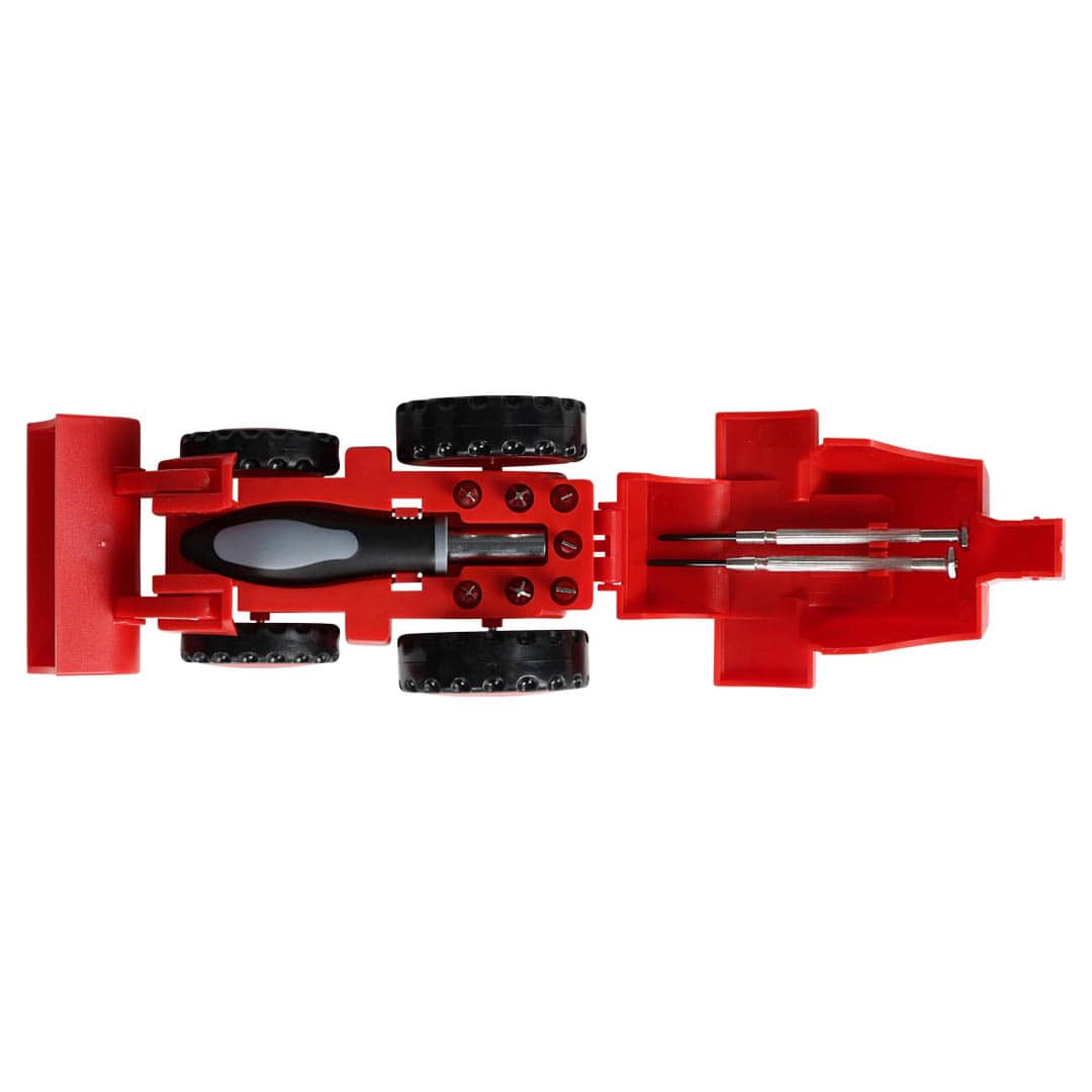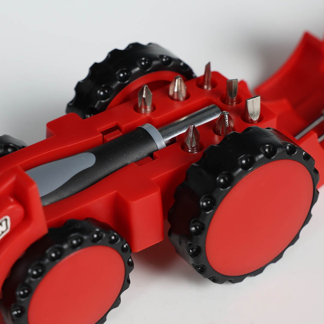 一見トラクターのおもちゃのように見える工具セット。 座席部分を開くと、ビットセット、ハンドル、ドライバーが収められています。 普段は棚に閉まってしまう工具も、これならインテリアとして飾っておきたくなるはず。 可愛らしいパッケージなので、D.I.Y好きなあの人へのギフトにも◎。