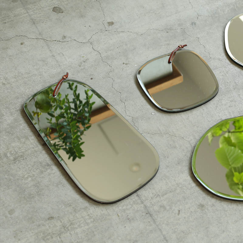 | 無駄な装飾を全て排除したことで見える、美しいシルエットが魅力の壁掛けミラー。時計や絵を飾るように、違うサイズを組み合わせてウォールデコのように楽しむのもオススメです。鏡に写り込む日常が、まるでインテリアの一つのように感じられるはず。 |
